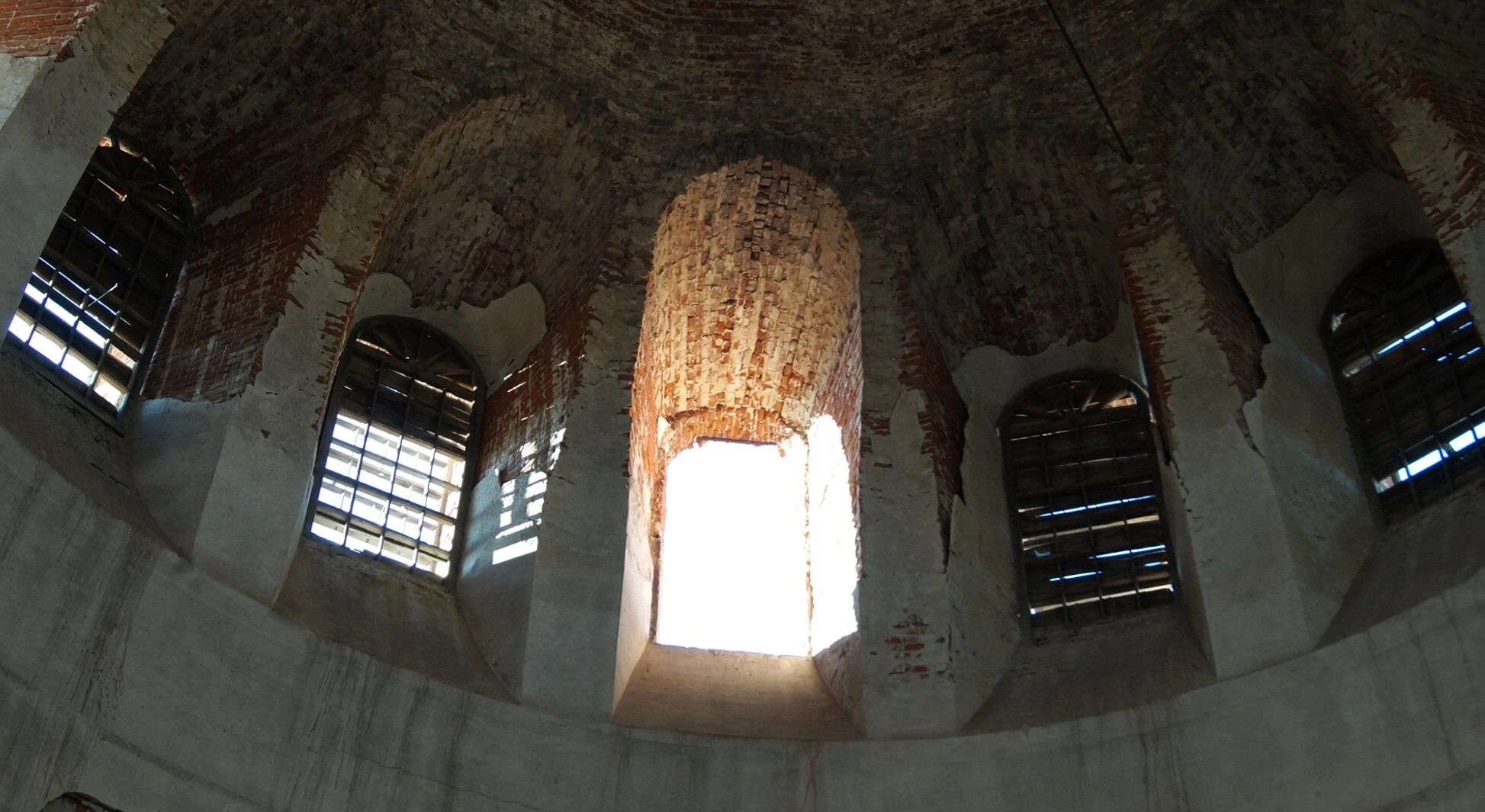Архитектурные формы купола отражают традиции православного зодчества, где каждый элемент несет глубокое символическое значение. Купольное пространство, устремленное ввысь, олицетворяет небесный свод и напоминает молящимся о горнем мире. Несмотря на видимые следы времени и частичные разрушения, интерьер сохраняет благородство и духовную атмосферу, присущую православным святыням.