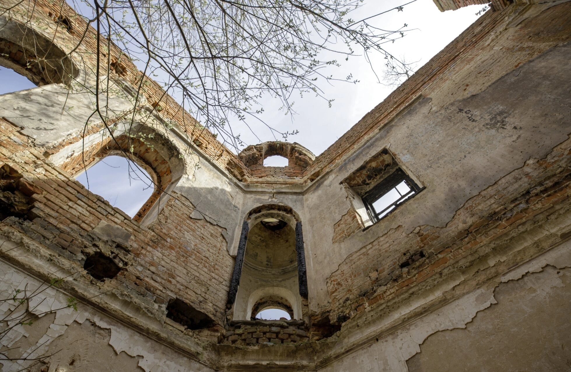 Представленная фотография запечатлела скорбный вид интерьера некогда благодатного храма во имя святителя Николая Чудотворца в деревне Журавинка Ряжского района Рязанской области. На снимке открывается внутреннее пространство церкви, ныне пребывающее в разрушении. Взору предстают массивные кирпичные стены, сложенные в традиционной для церковного зодчества манере, и характерные арочные проемы, которые, вероятно, служили окнами или внутренними переходами. Груды кирпича и открытые участки кладки свидетельствуют о запустении, постигшем это святое место. Отсутствие кровли и сводов позволяет свету беспрепятственно проникать внутрь, контрастно выделяя уцелевшие архитектурные элементы и подчеркивая тяжесть утраты. Церковь, судя по стилистическим признакам и местоположению, могла быть возведена в конце XIX или начале XX века и являлась частью духовной жизни местного прихода. Ныне этот объект, зафиксированный по координатам 53.636501, 39.948596, состоит в категории памятников культурного наследия Ряжского района на платформе Wikimedia Commons, что призывает к осмыслению его исторической ценности и необходимости сохранения памяти о нем.