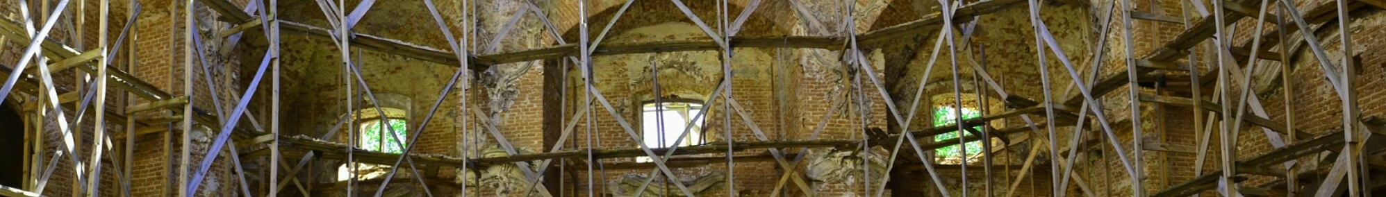 Особое внимание привлекают установленные внутри здания металлические и деревянные конструкции. Эти поддерживающие элементы были смонтированы, вероятно, в рамках противоаварийных работ, чтобы предотвратить дальнейшее разрушение исторического сооружения. Подобные меры свидетельствуют о начавшемся процессе сохранения храма для будущих поколений.
