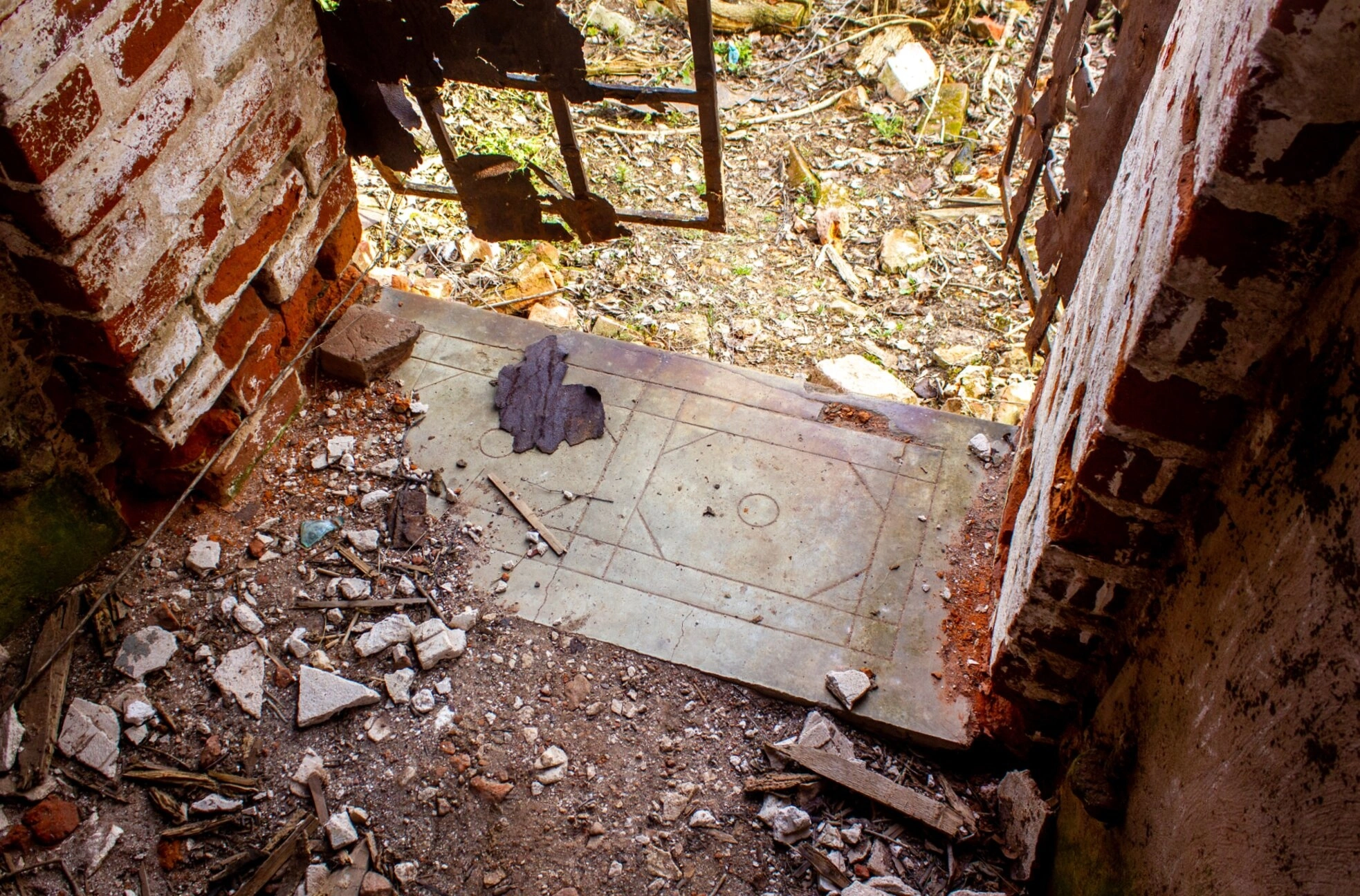Особенно прискорбно видеть осквернённую стену с нарисованным граффити в виде черепа — символом тленности земного бытия, который в данном контексте приобретает особую пронзительность. Сквозь разрушенные оконные проёмы, некогда украшенные коваными решётками, проникает холодный свет, освещая голые ветви деревьев за пределами храма, что указывает на съёмку в осенне-зимний период.