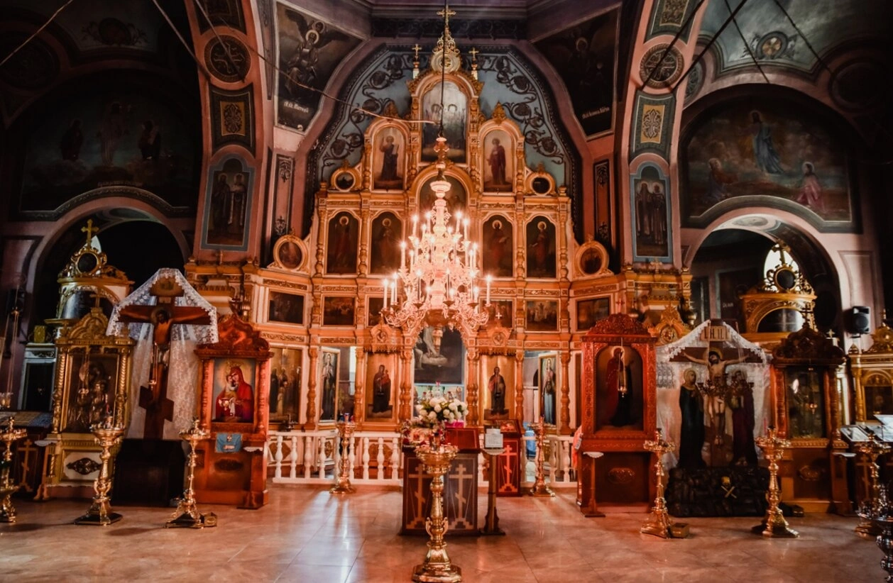 Стены и своды храма богато украшены настенной росписью и фресками на библейские и евангельские сюжеты, которые не только назидают молящихся, но и придают внутреннему пространству особую духовную глубину и величие. По бокам от иконостаса расположены киоты с чтимыми образами, украшенные драгоценными ризами и лампадами. Вся обстановка храма дышит святостью и многовековой традицией русского православия, призывая души к молитвенному созерцанию и покаянию.
