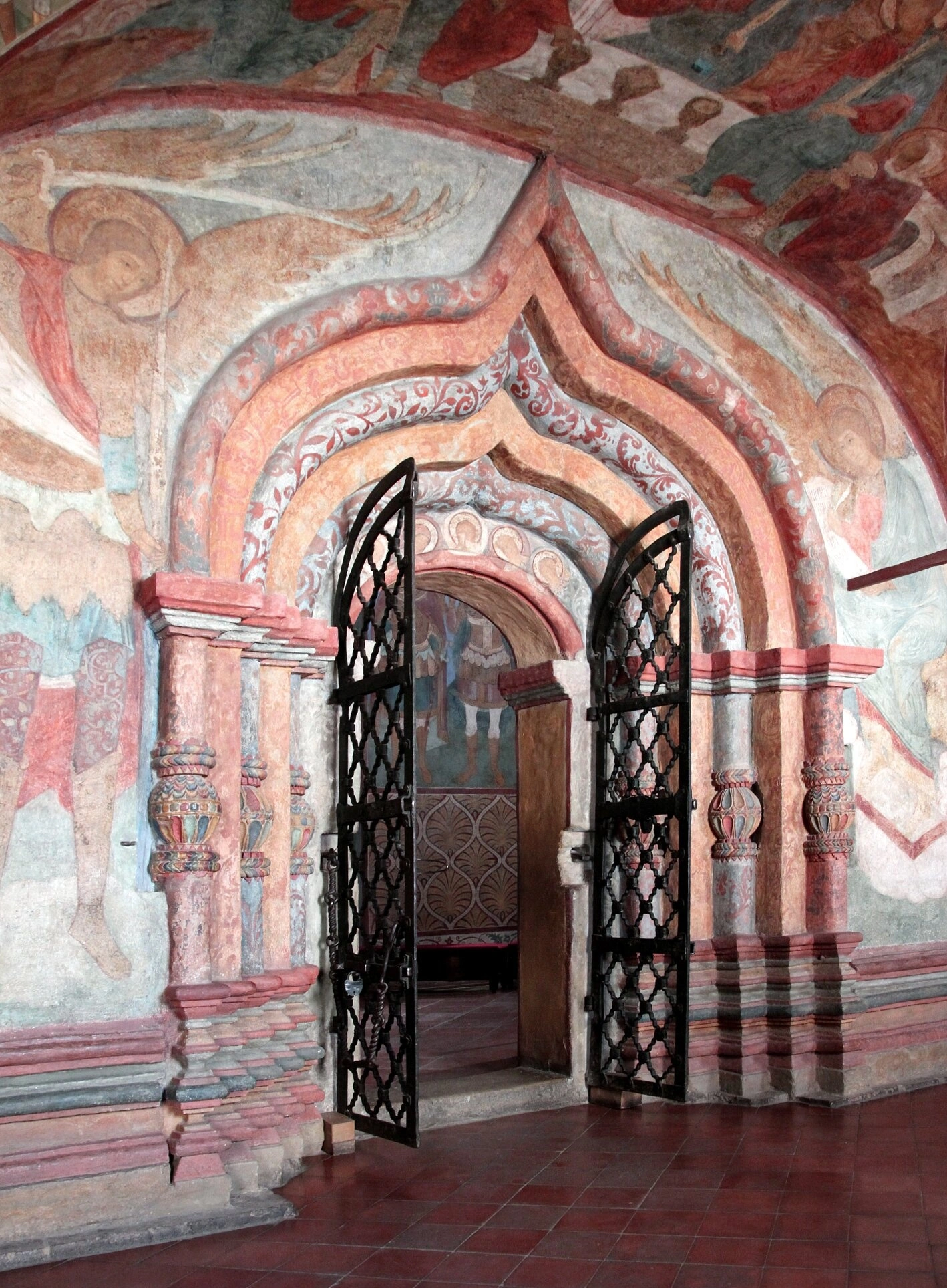Стены и своды прохода украшены уникальными фресковыми росписями, созданными в лучших традициях православной иконографии. Особого внимания заслуживает монументальная композиция «Страшный суд», расположенная на западной стене собора, которая является одной из наиболее значимых духовных достопримечательностей монастырского ансамбля.