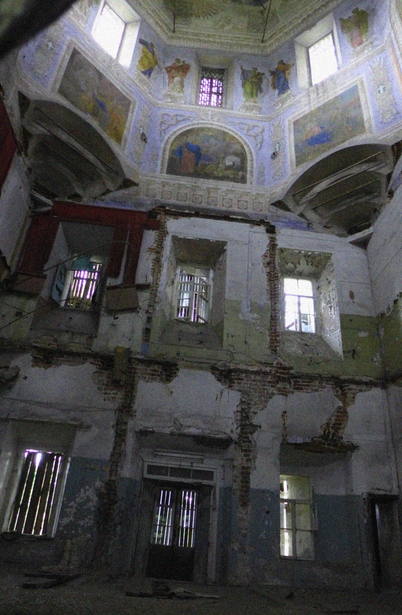 Несмотря на плачевное состояние здания, на потрескавшейся и осыпавшейся штукатурке ещё угадываются фрагменты некогда прекрасной храмовой росписи. Лики святых и библейские сюжеты, исполненные благочестивыми мастерами, постепенно утрачиваются под воздействием времени и стихии. Сквозь оконные проёмы, некоторые из которых сохранили кованые решётки, льётся естественный свет, символически напоминая о Божественном свете, некогда озарявшем эту святыню.
