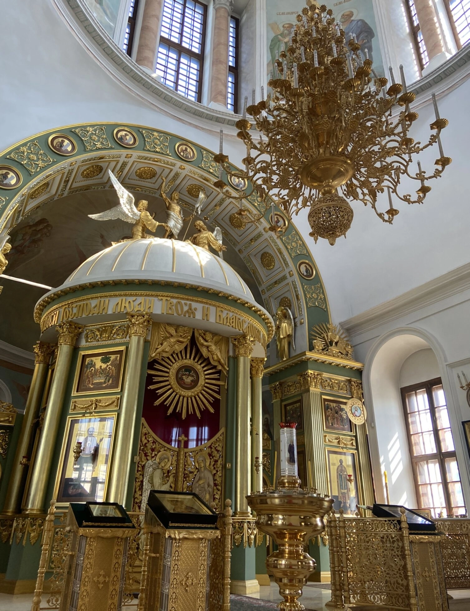 Каждый элемент убранства храма — от изящных резных деталей иконостаса до фресок на сводах — свидетельствует о высоком мастерстве создателей и глубокой вере поколений, молившихся в этих стенах. Этот интерьер является не только памятником архитектуры, но и живым воплощением православной духовности, призывающим к молитве и созерцанию вечной красоты Божьего мира.