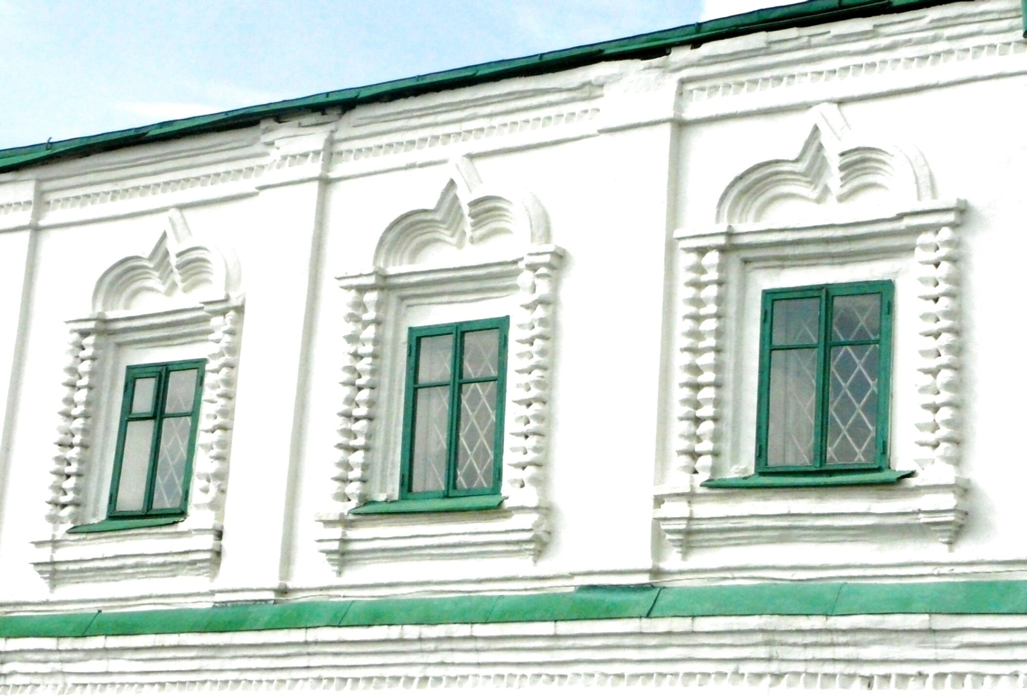 Под окнами проходит зелёный карниз, который визуально отделяет первый этаж от второго и добавляет фасаду живописности и завершённости. Монастырь, основанный в середине XVII века, неоднократно перестраивался и восстанавливался, сохраняя свой уникальный духовный и исторический облик. Ныне он является действующей обителью Казанской епархии Русской Православной Церкви и привлекает паломников и туристов своей благодатной атмосферой и архитектурной красотой.
