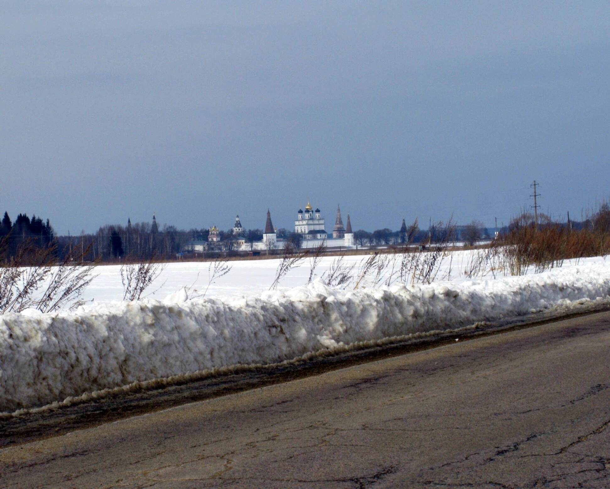 Иосифо-Волоцкий монастырь зимой: святой образ на заснеженном поле