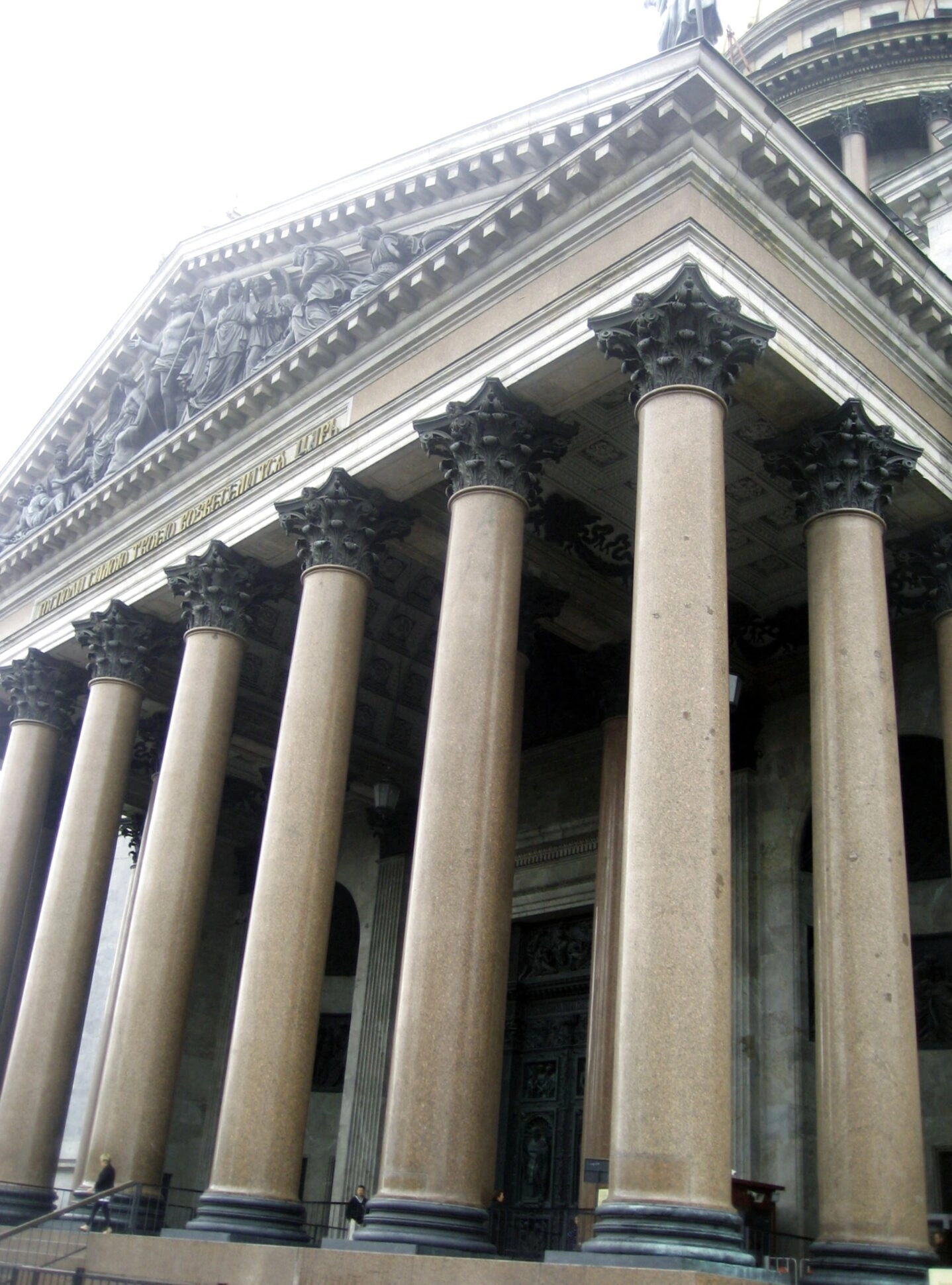 На представленной фотографии запечатлён Исаакиевский собор – кафедральный храм Санкт-Петербургской епархии, расположенный на Исаакиевской площади. Снимок позволяет рассмотреть величественную архитектуру этого православного сооружения, выполненного в стиле позднего классицизма. Центральным элементом композиции является массивный золочёный купол, окружённый колоннадой. Фасад украшают скульптурные группы на фронтонах и статуи, а также малая колокольня с собственным небольшим позолоченным куполом.