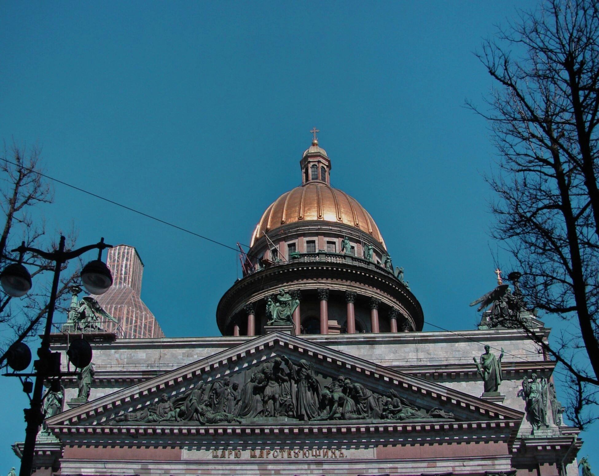 На представленном снимке запечатлён величественный Исаакиевский собор, кафедральный храм Санкт-Петербургской епархии, освящённый во имя преподобного Исаакия Далматского. Это четвёртое и грандиознейшее сооружение, возведённое на этом месте в столице Российской империи, строительство которого по проекту архитектора Огюста Монферрана велось на протяжении сорока лет, с 1818 по 1858 год. Собор, являющийся выдающимся памятником позднего классицизма, служит одной из главных духовных и архитектурных доминант северной столицы.