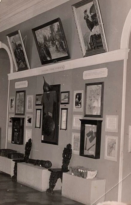 На представленной фотографии запечатлена историческая экспозиция, размещенная в стенах священного храма Живоначальной Троицы города Зарайска. Экспозиция посвящена духовным и культурным традициям донского казачества, неразрывно связанного с православной верой на протяжении веков.