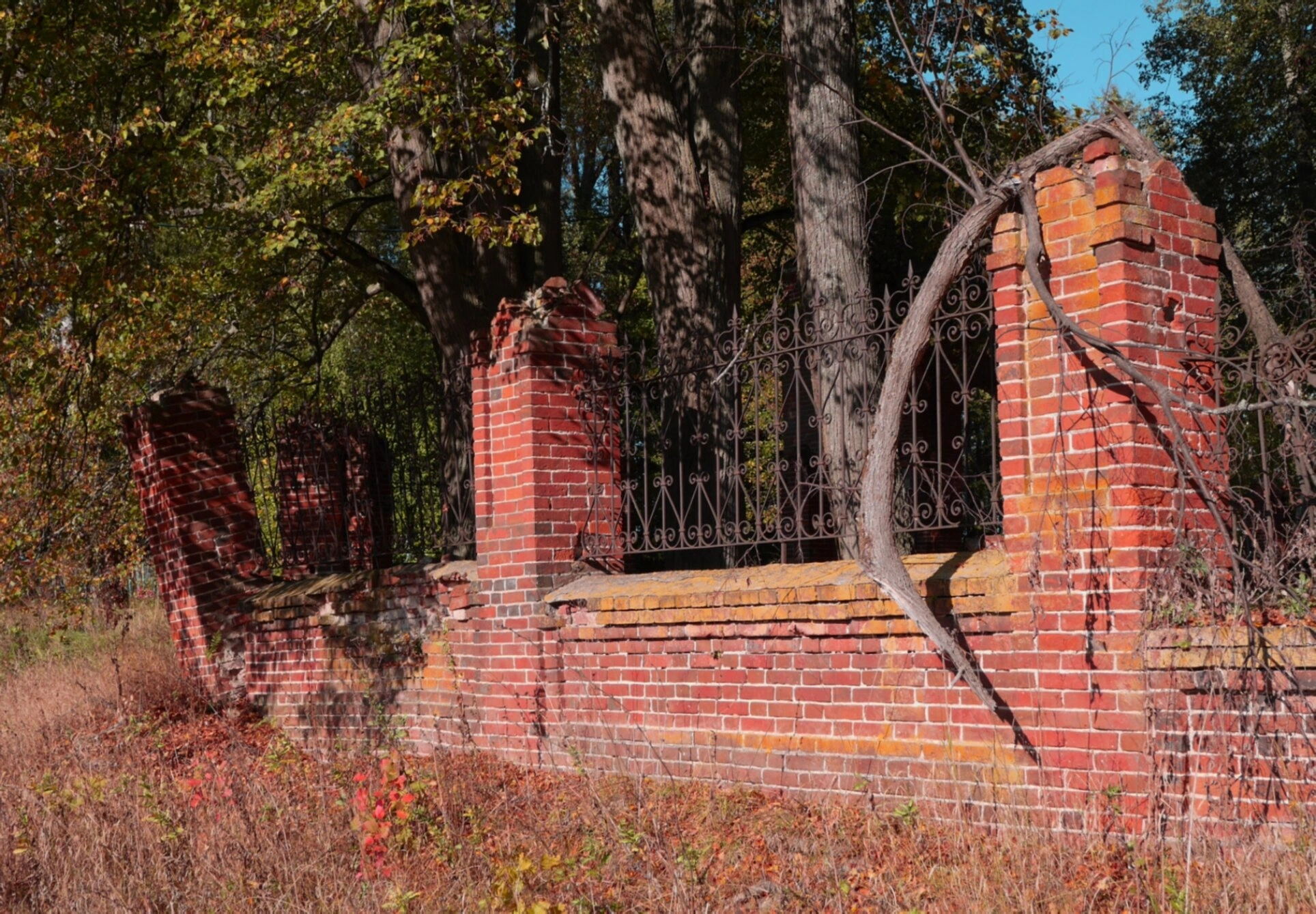 На представленной фотографии запечатлён фрагмент исторической кирпичной ограды, некогда окружавшей Церковь Покрова Пресвятой Богородицы в подмосковном селе Мышенское. Ныне это территория Ступинского района. Полуразрушенная стена из красного кирпича и вмурованные в неё секции ажурной кованой решётки молчаливо свидетельствуют о былом величии священного места и являются памятником культурного наследия.