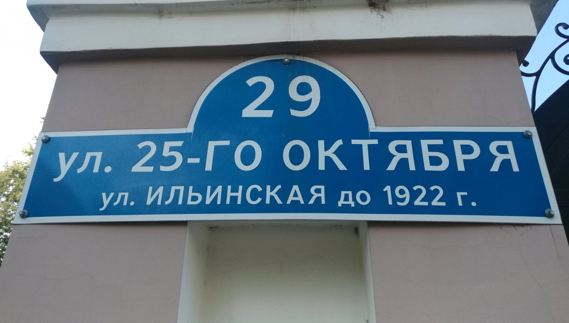 На представленной фотографии запечатлена уличная табличка, установленная вблизи Свято-Ильинского мужского монастыря в городе Тюмени. Указатель несёт в себе свидетельство смены исторических эпох: современное название «улица 25-го Октября» соседствует с её исконным, дореволюционным наименованием – «улица Ильинская», данным в честь святого пророка Божия Илии и одноимённой обители.
