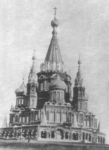 На представленной фотографии запечатлен утраченный ныне исторический облик Михаило-Архангельского собора в Ижевске — величественного православного храма, являвшегося одной из архитектурных доминант города до его варварского уничтожения в 1937 году.