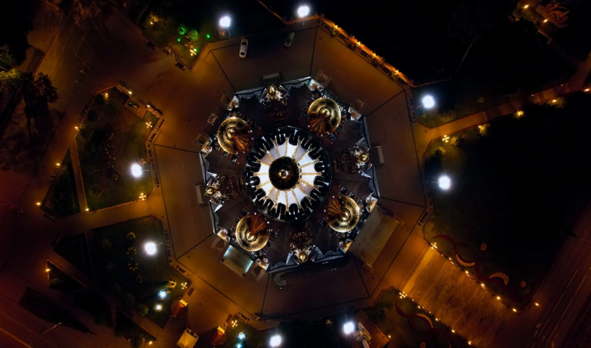 На представленной фотографии запечатлён величественный кафедральный собор святого Архангела Михаила, являющийся главным православным храмом Ижевской епархии. Белоснежный пятиглавый собор с золотыми куполами возвышается на 67 метров над городом, будучи возведённым на одной из самых высоких точек Ижевска — исторической Михайловской (Красной) площади.