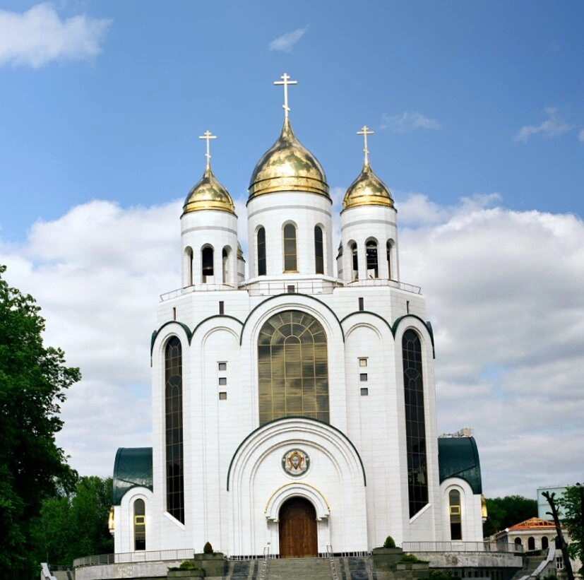 На представленной фотографии запечатлён величественный Кафедральный собор Христа Спасителя, являющийся главным православным храмом Калининградской епархии Русской православной церкви. Этот великолепный собор, освящённый в честь праздника Рождества Христова, был возведён в начале 2000-х годов по проекту заслуженного архитектора России Олега Валентиновича Копылова.