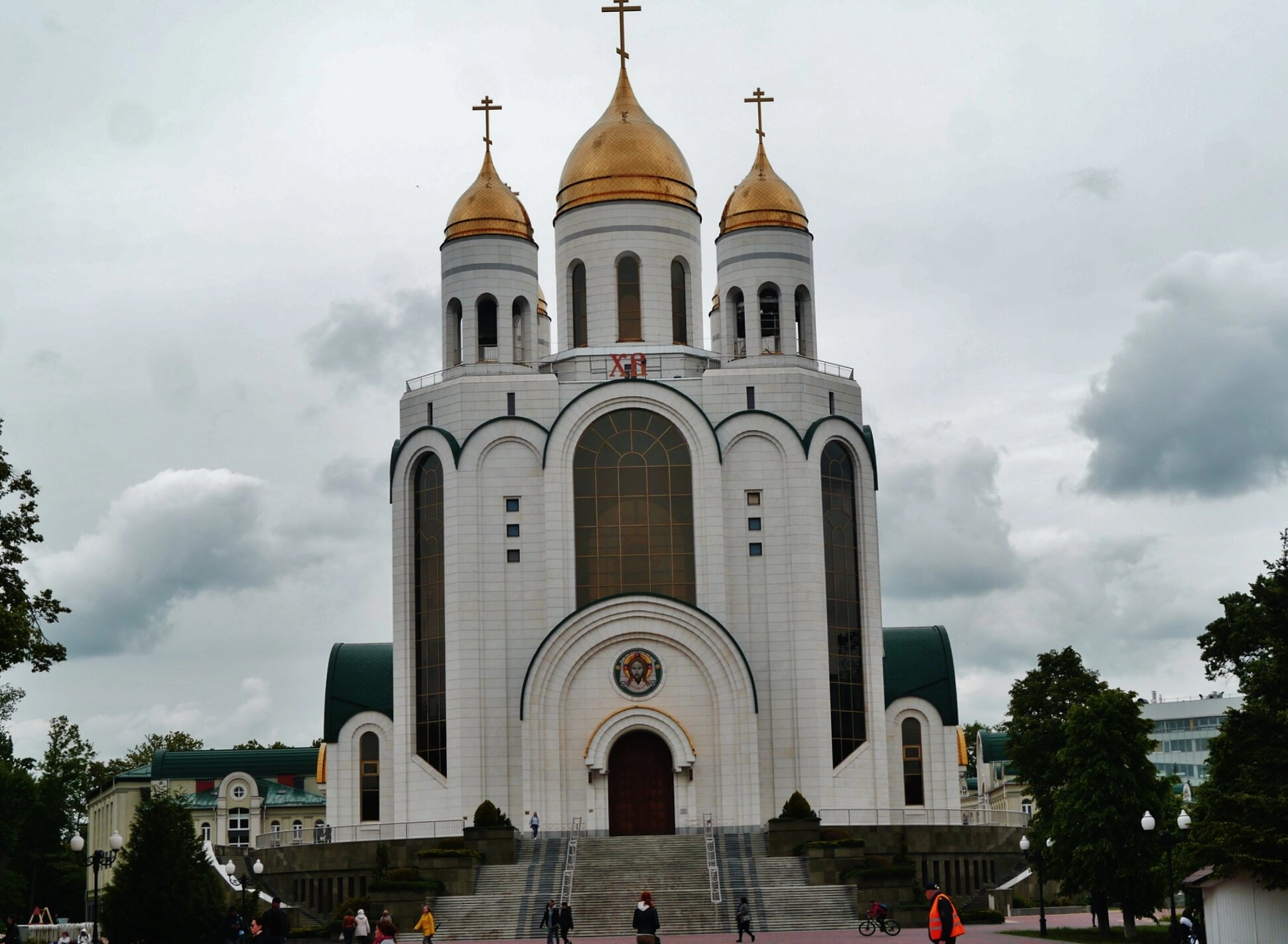 На представленной фотографии запечатлён величественный Кафедральный собор Христа Спасителя, являющийся кафедральным собором Калининградской епархии Русской Православной Церкви. Храм располагается в центре Калининграда на площади Победы, что символично подчёркивает его духовную роль в жизни города и области.