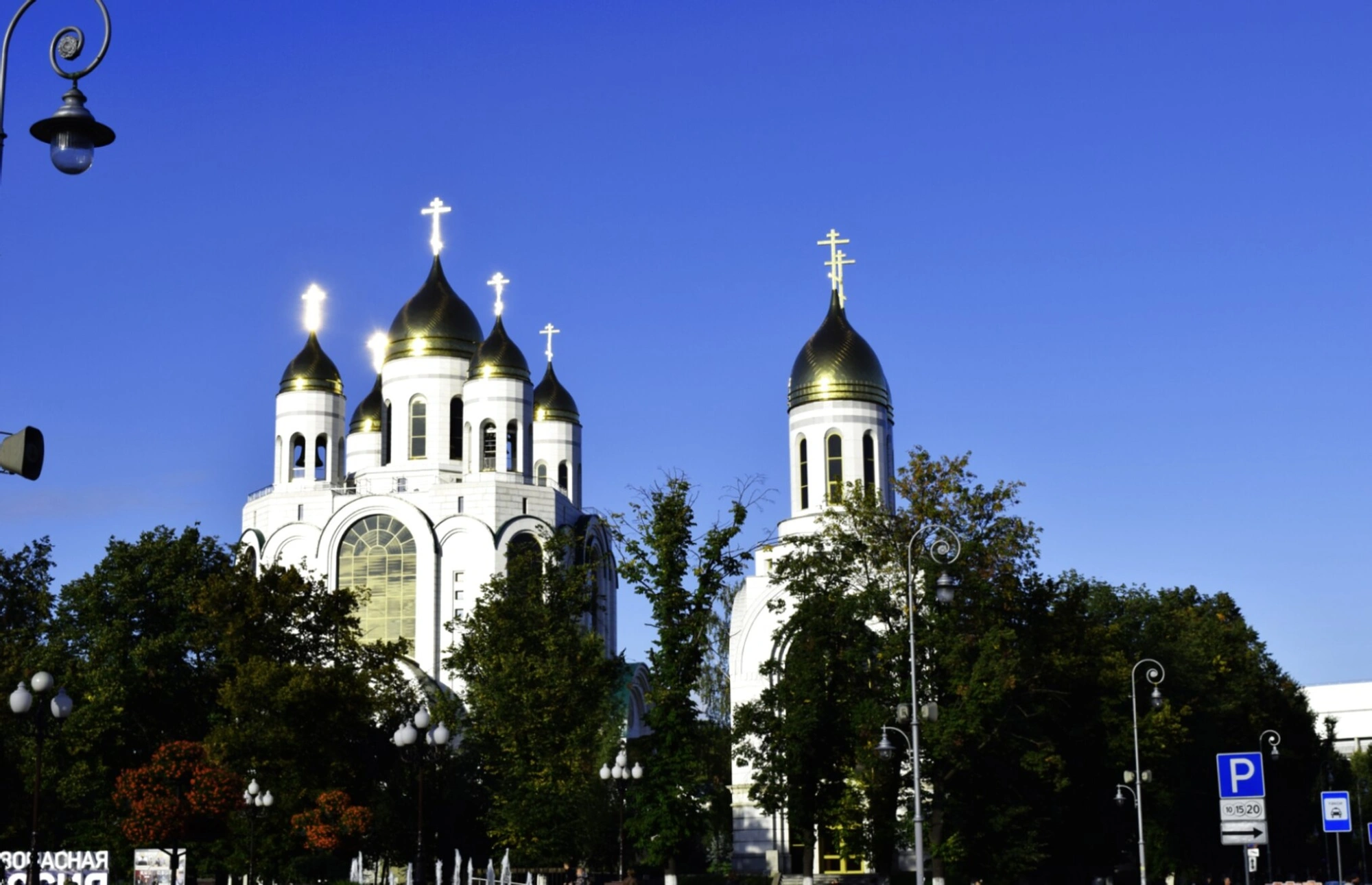 На представленной фотографии запечатлён величественный Кафедральный собор Христа Спасителя, являющийся кафедральным православным храмом Калининградской епархии Русской Православной Церкви. Этот великолепный собор, освящённый в честь Рождества Христова, был возведён в начале XXI века как символ духовного возрождения Калининградской земли.