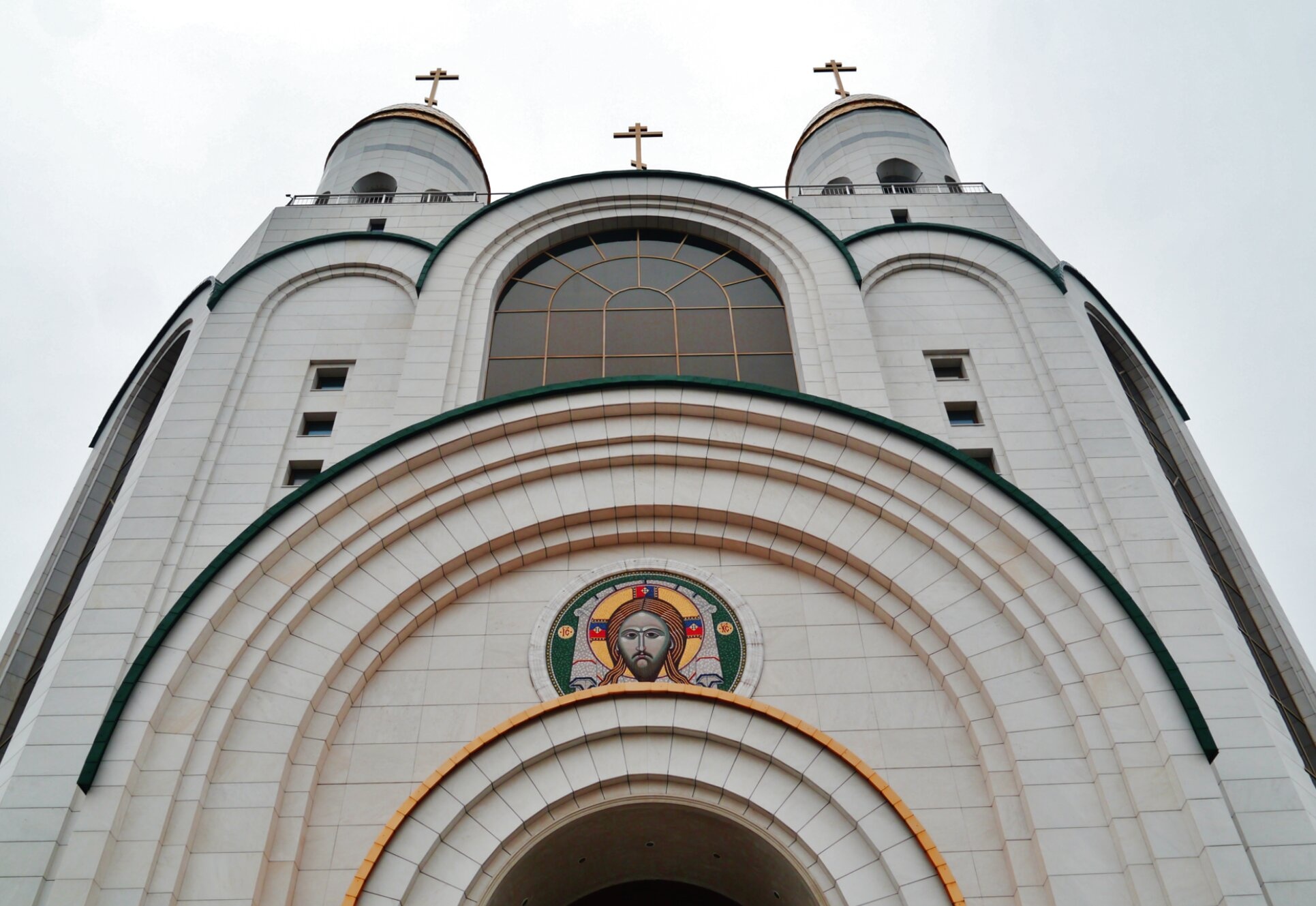 На представленной фотографии запечатлён величественный Кафедральный собор Христа Спасителя, являющийся главным православным храмом города Калининграда. Собор расположен в центральной части города, на площади Победы, и служит архитектурной доминантой и духовным сердцем региона.