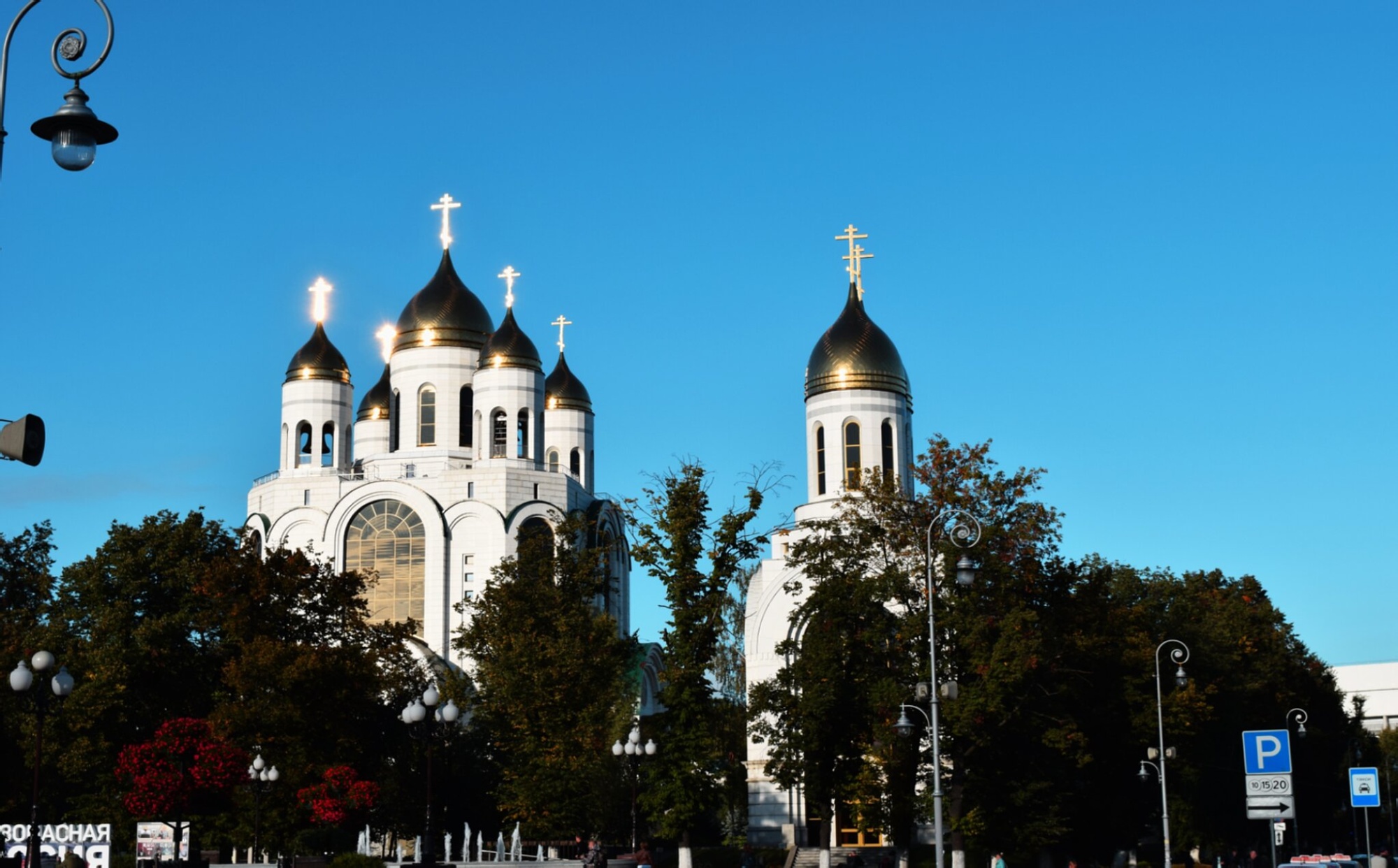 На фотографии запечатлён величественный Кафедральный собор во имя Христа Спасителя, являющийся кафедральным православным храмом Калининградской епархии Русской Православной Церкви. Этот величественный белокаменный собор, увенчанный златоглавыми куполами, сияющими под лучами солнца, возвышается в самом сердце города Калининграда на площади Победы.