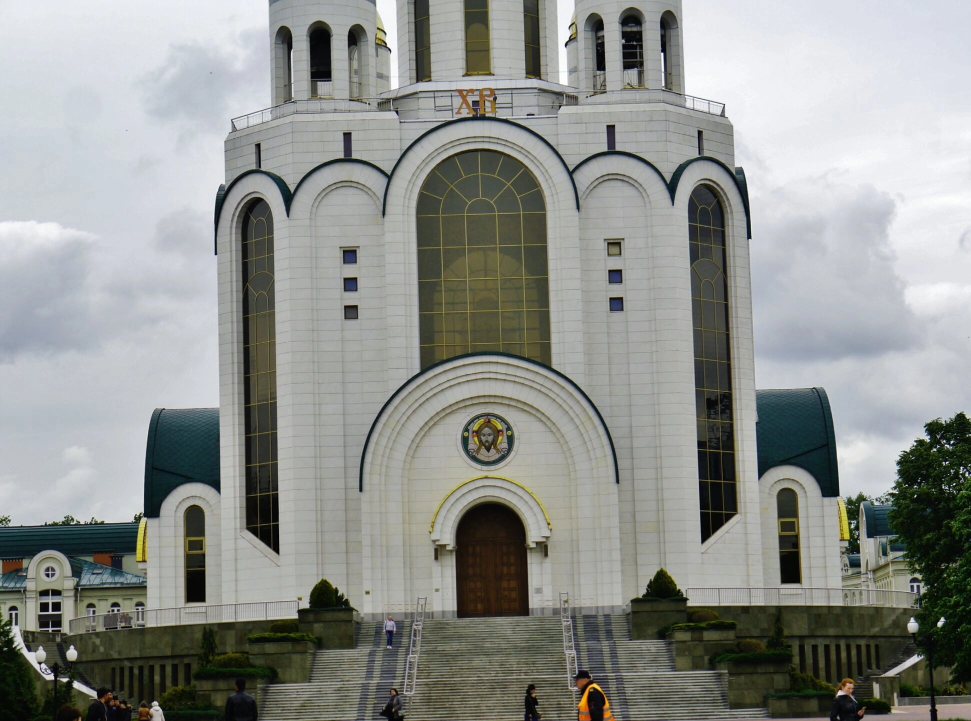 На представленной фотографии запечатлён величественный Кафедральный собор Христа Спасителя, являющийся кафедральным храмом Калининградской епархии Русской Православной Церкви. Это монументальное сооружение было возведено на центральной площади Калининграда как символ духовного возрождения и вечная память о русских воинах, павших в сражениях Семилетней войны, наполеоновских войн, Первой мировой и Великой Отечественной войн.