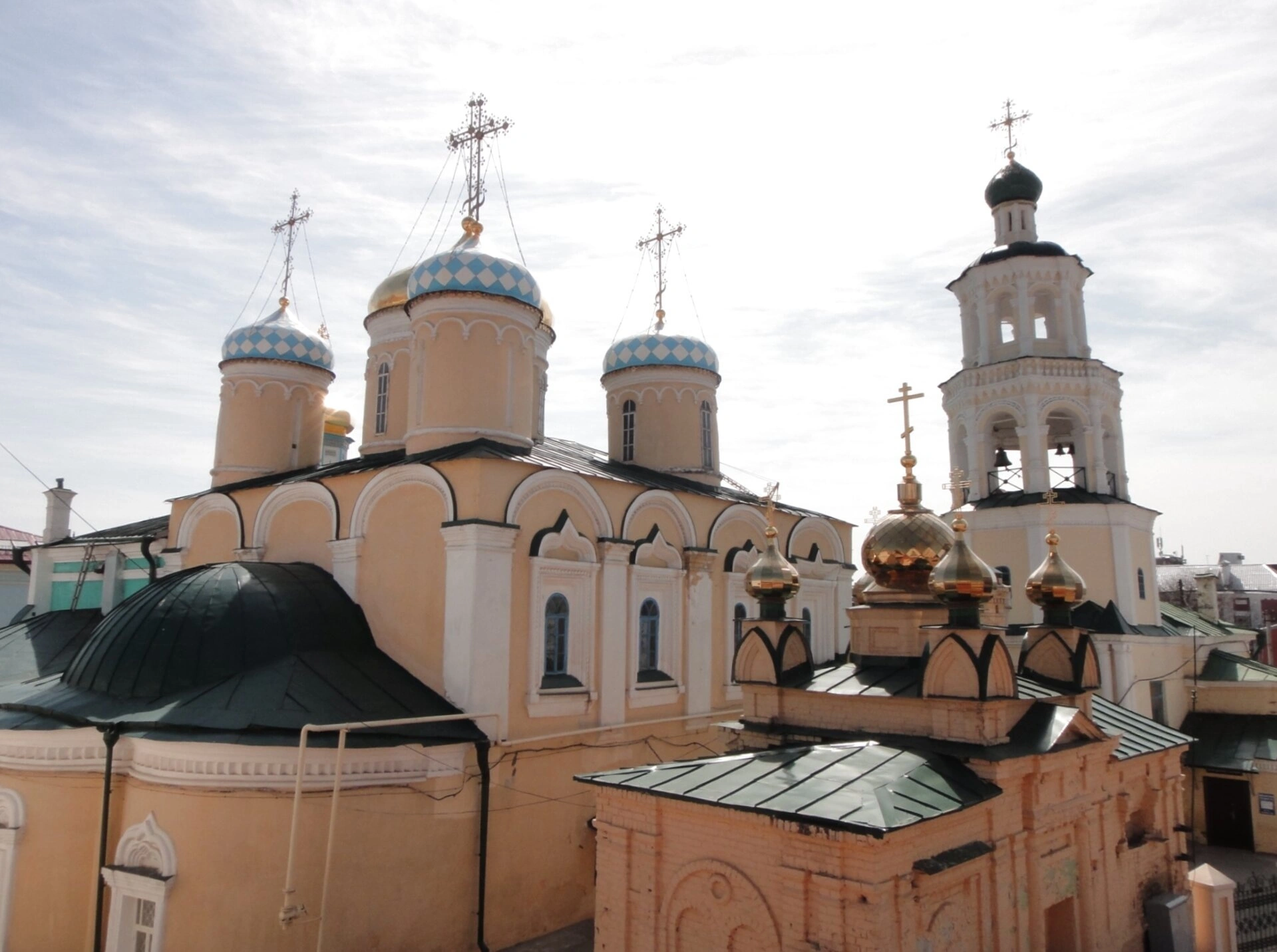 На представленной фотографии запечатлён величественный кафедральный собор во имя святителя Николая Чудотворца, расположенный в историческом центре Казани на улице Баумана. Этот православный храм, являющийся архитектурным памятником и духовным центром города, был возведён в конце XIX века на средства благотворителей и освящён в честь одного из наиболее почитаемых на Руси святых.