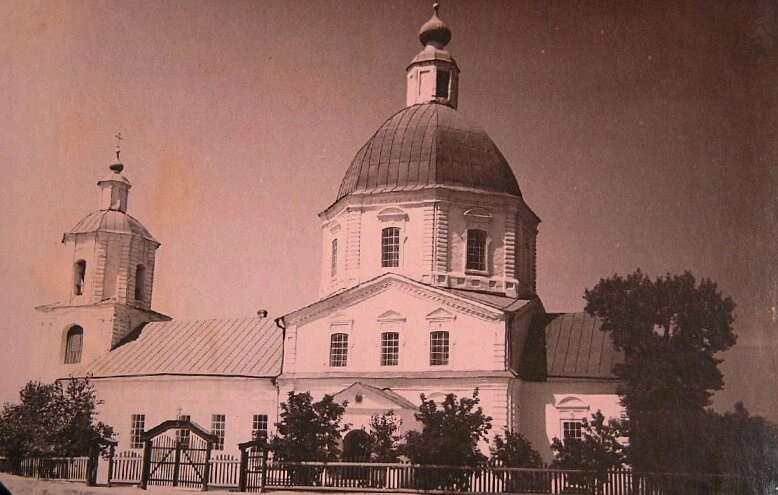 На представленной исторической фотографии запечатлён кафедральный собор в честь Покрова Пресвятой Богородицы, располагающийся в городе Урюпинске. Храм является выдающимся памятником церковной архитектуры и духовным центром православной жизни региона.