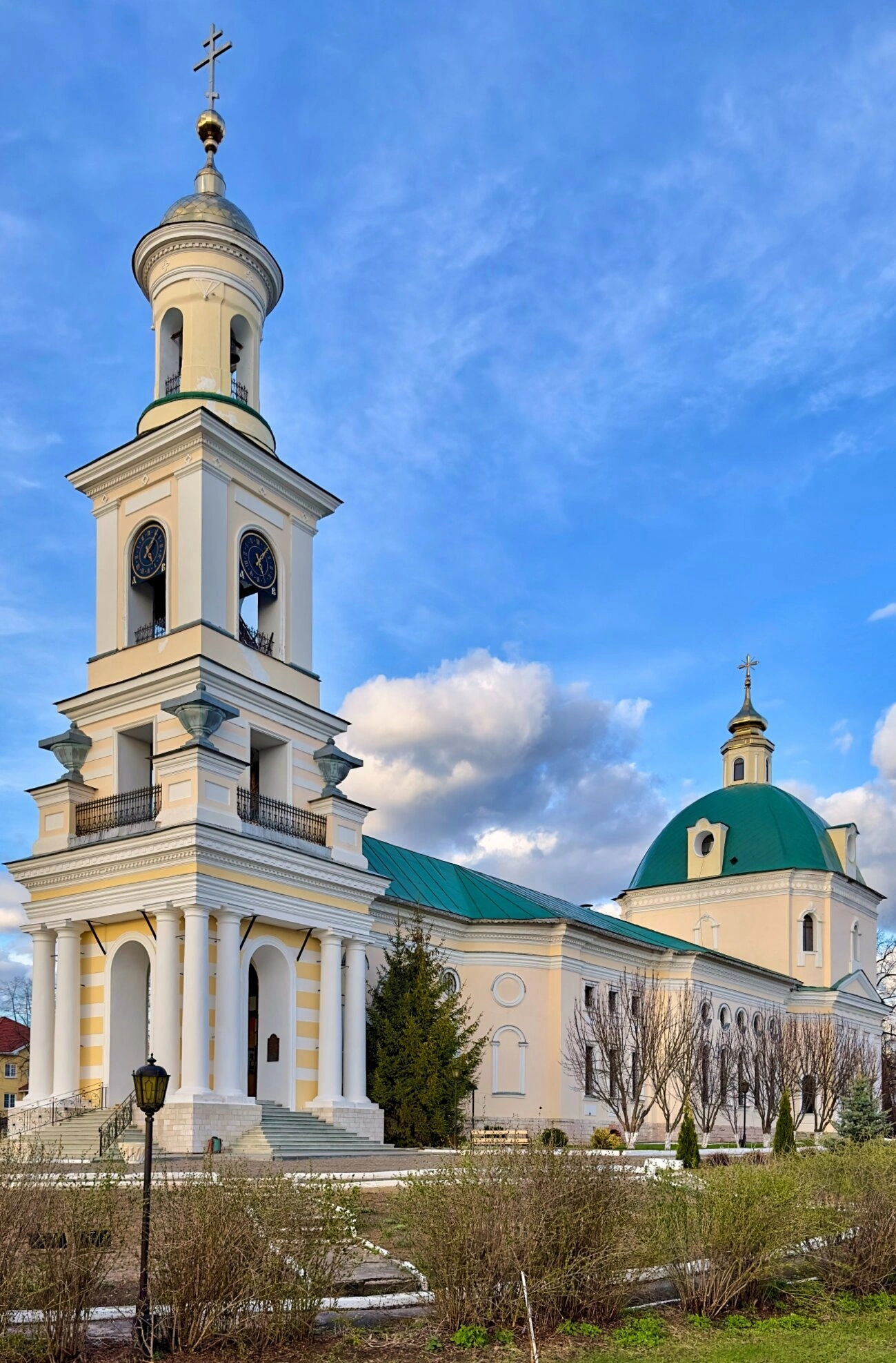 На фотографии запечатлен Кафедральный собор Рождества Христова — главный православный храм города Выксы Нижегородской области. Этот величественный собор, основанный в 1773 году, является выдающимся памятником церковной архитектуры и духовным центром региона.