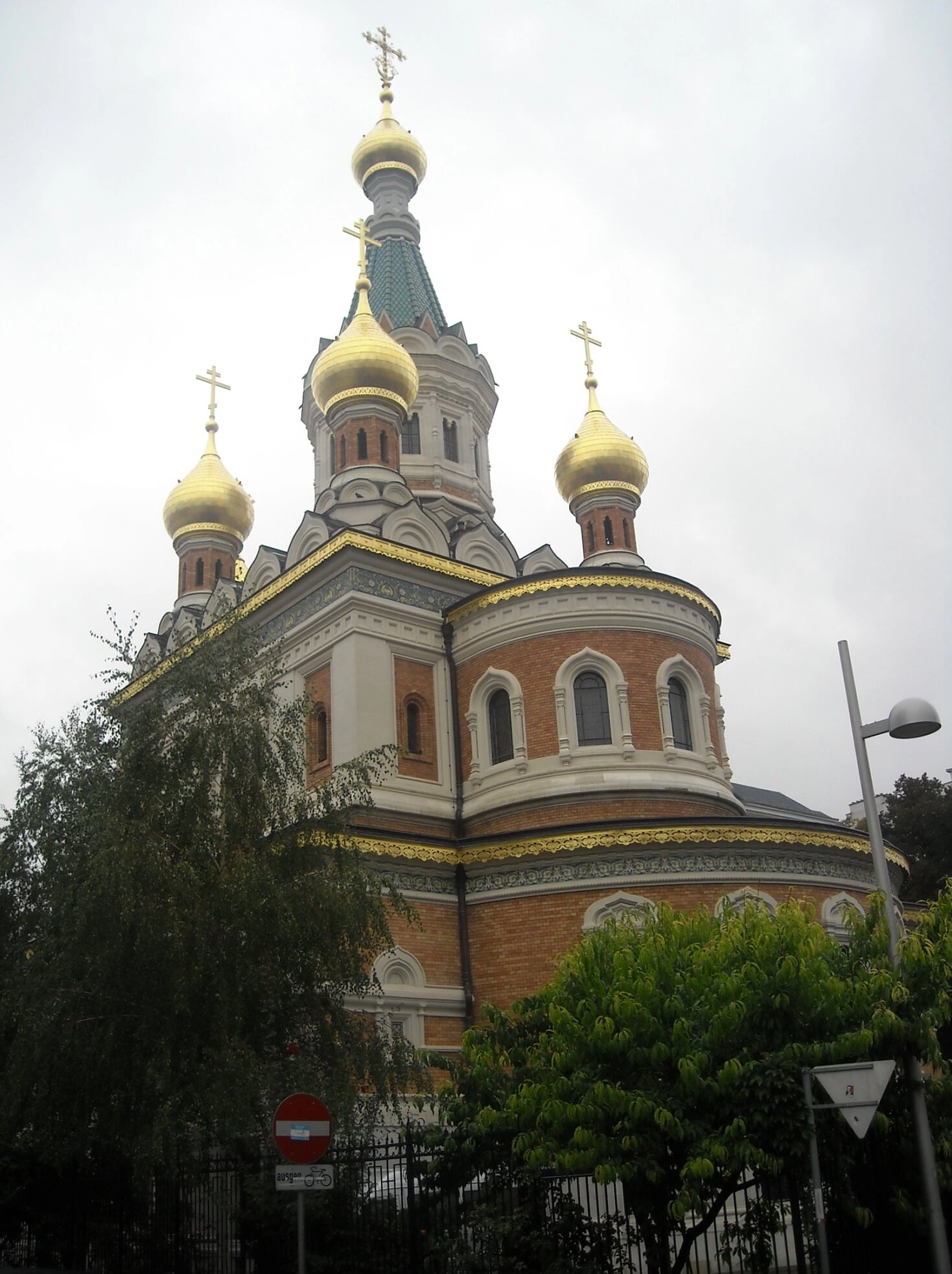 На фотографии запечатлён величественный Кафедральный собор во имя Святителя Николая Чудотворца, находящийся в столице Австрии. Этот православный храм, освящённый в честь одного из наиболее почитаемых христианских святых, является не только духовным центром русского православия в Австрии, но и выдающимся памятником церковной архитектуры.