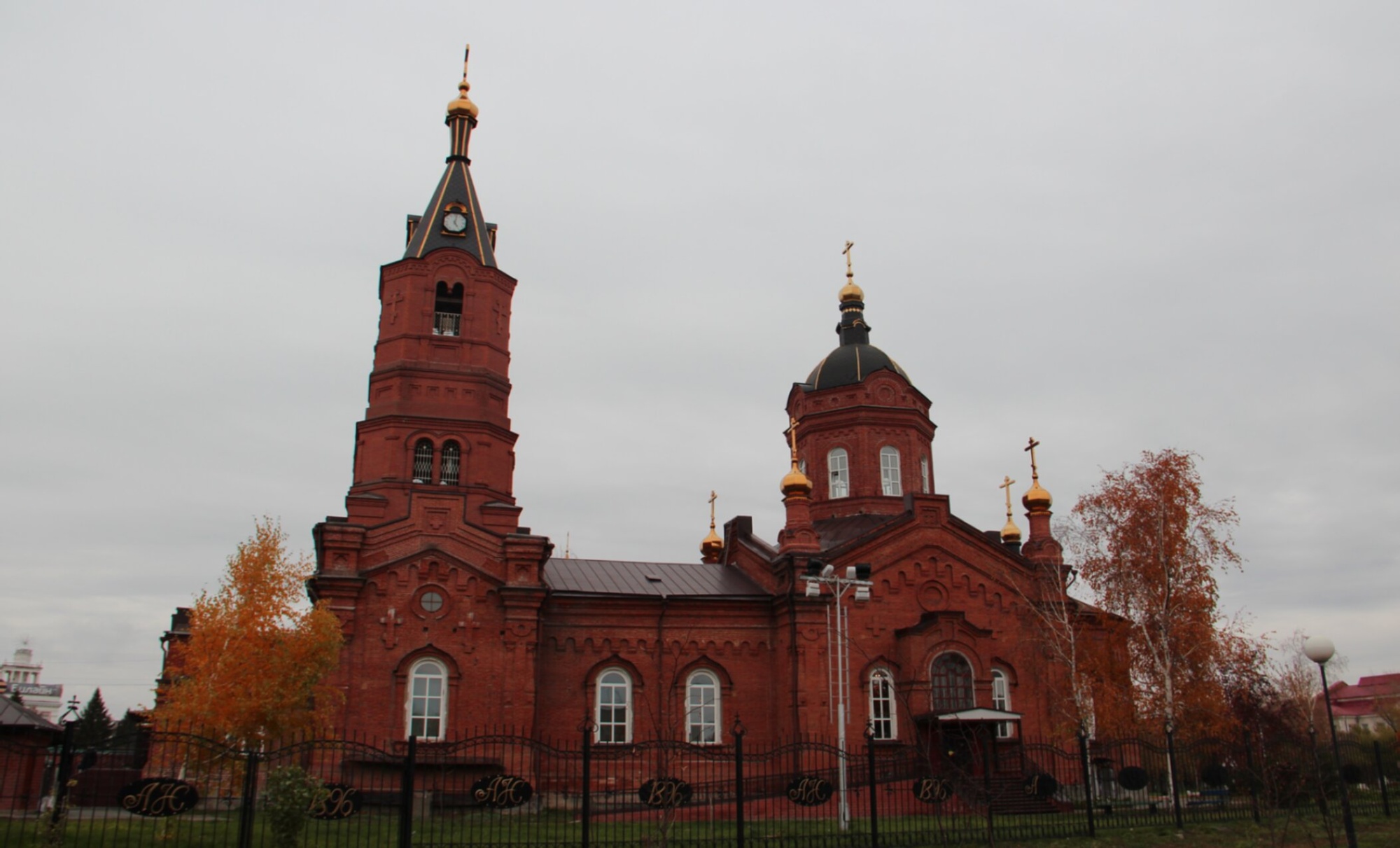 На фотографии запечатлён величественный Александро-Невский собор, являющийся кафедральным собором Курганской епархии Русской Православной Церкви. Этот выдающийся духовный и архитектурный памятник, расположенный в самом сердце Зауралья, по праву считается одной из главных святынь и украшений города Кургана.