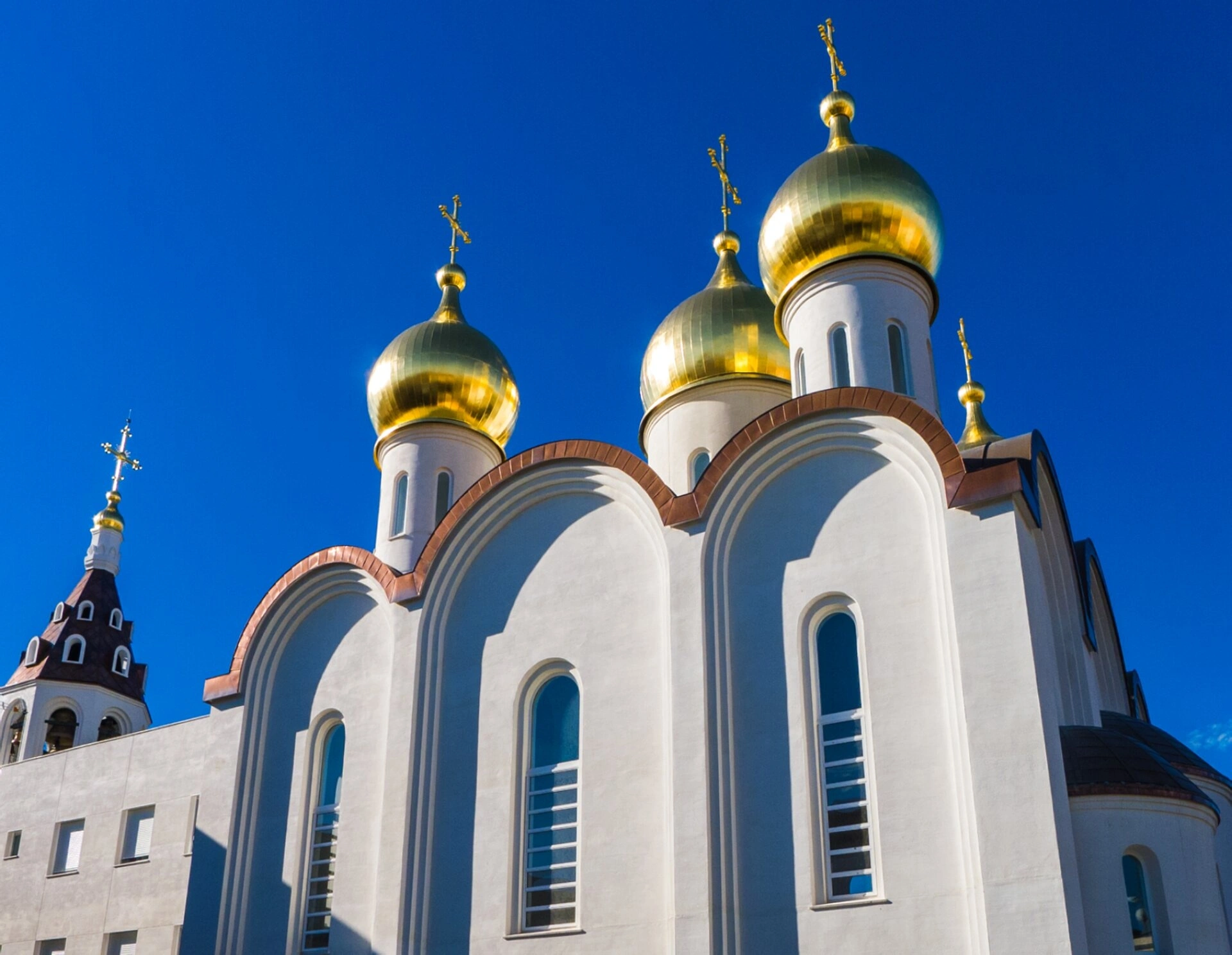 Архитектурный облик храма, увенчанного золочёными куполами-луковками, выполнен в традиционном русском стиле, что создаёт уникальный образ православной святыни в южноевропейском городе. Над главным куполом возвышается православный крест, символизирующий искупительную жертву Спасителя. Фасад здания выполнен из светлого камня, что гармонично сочетается с позолотой куполов, устремлённых в небо.