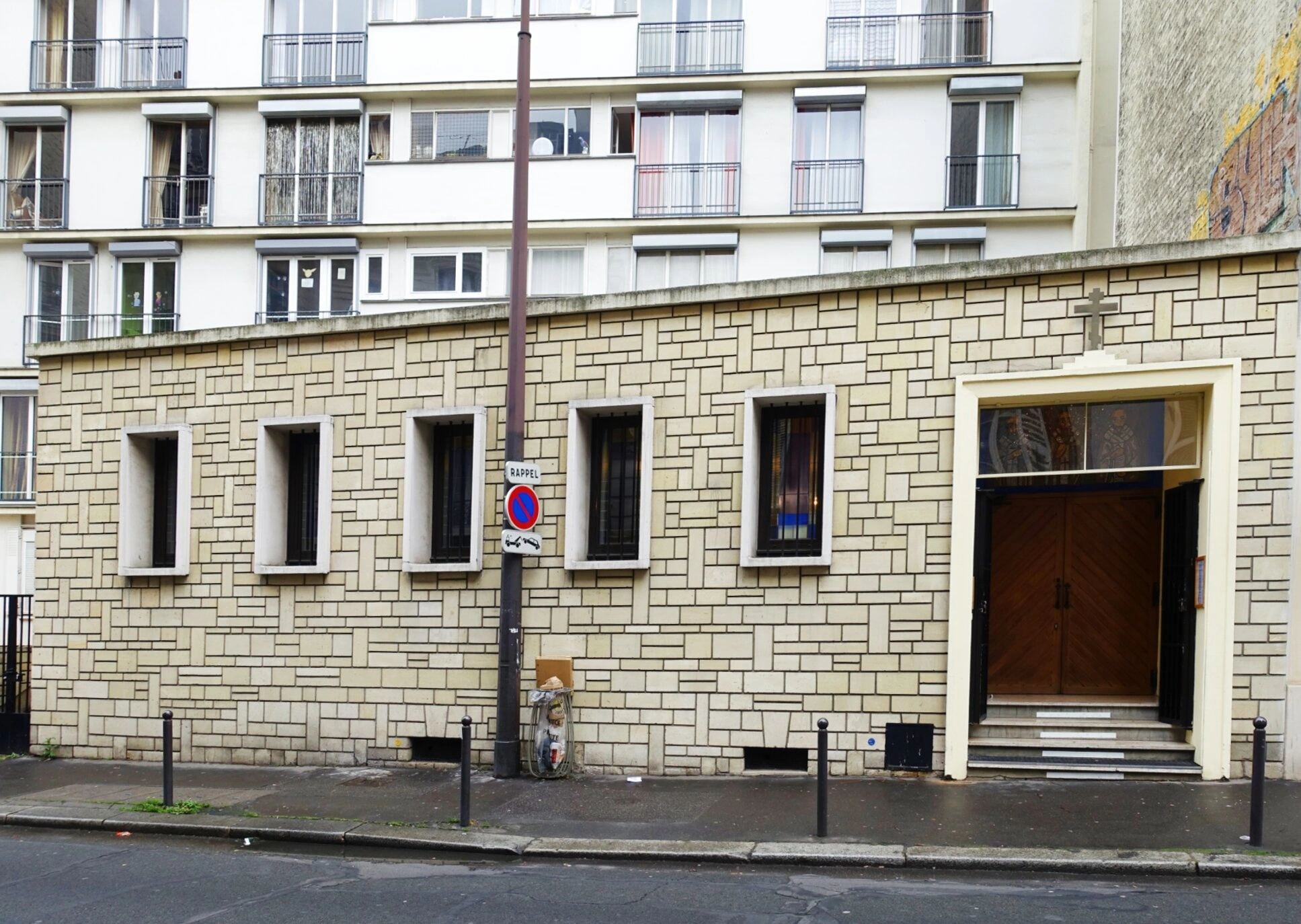 На фотографии запечатлен фасад кафедрального собора Трех Святителей в Париже, являющегося главным храмом Корсунской епархии Русской православной церкви. Здание расположено в 15-м округе французской столицы по адресу: улица Петель, 5.