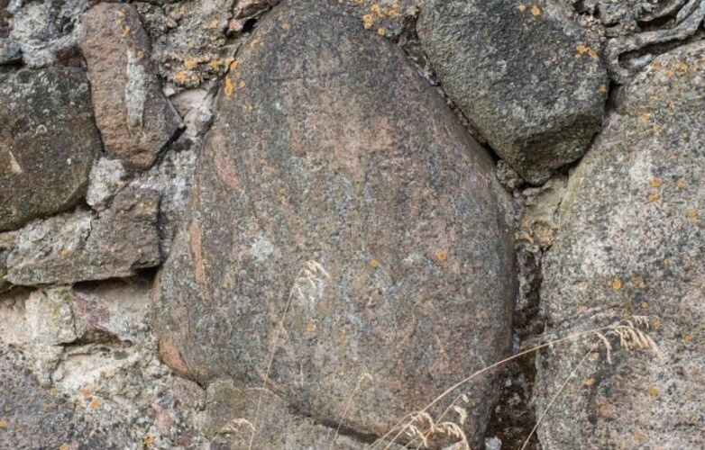 Поверхность камней, неровная и фактурная, носит следы многовекового воздействия природных стихий, что придаёт им особую благородную патину времени. Покрывающие отдельные участки кладки узорчатые пятна мха и лишайника символизируют неразрывную связь творения рук человеческих и природы, подчёркивая умиротворённость и древность этого намоленного места.