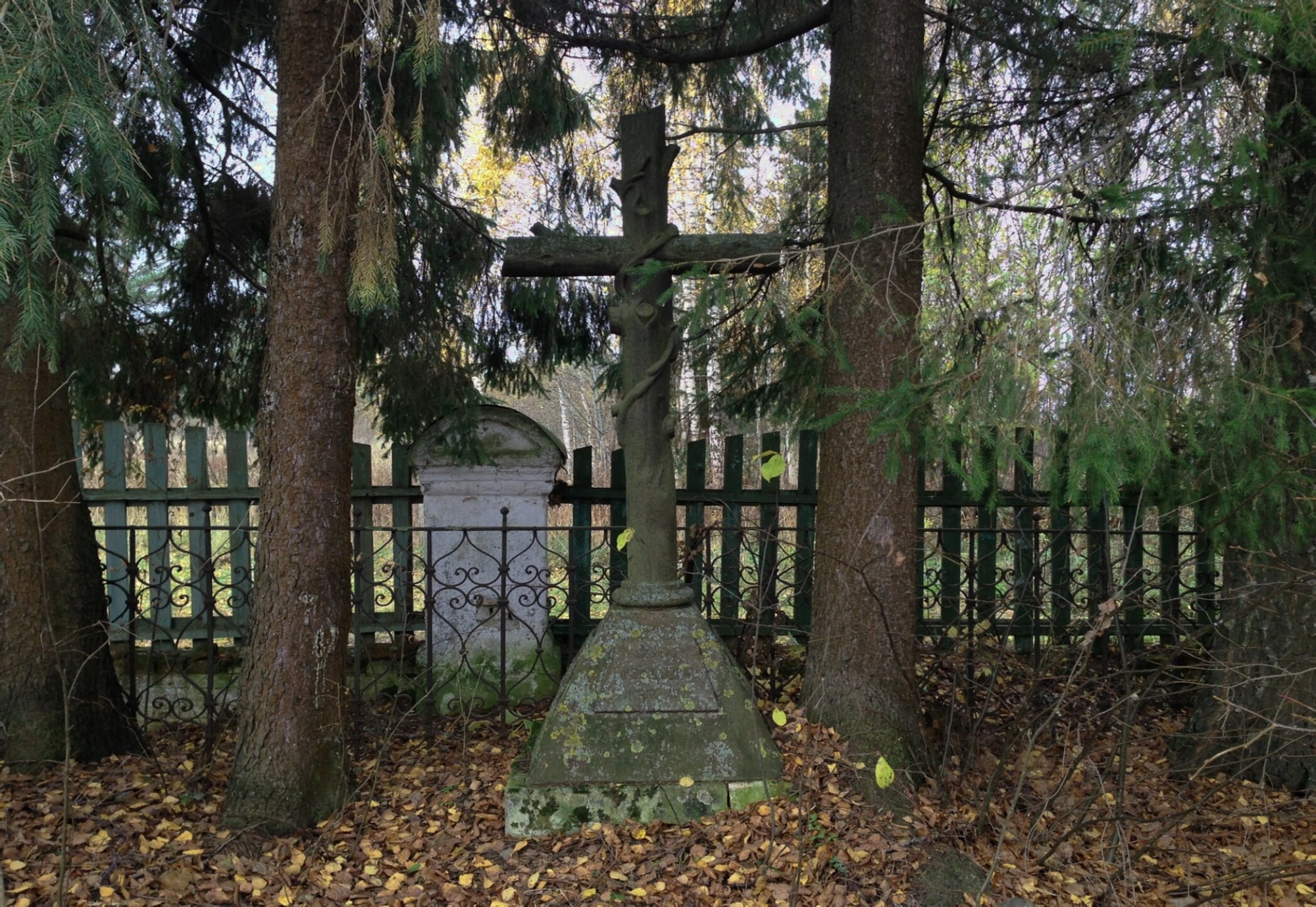 Каменный крест на территории Церкви Покрова в Пиногощах