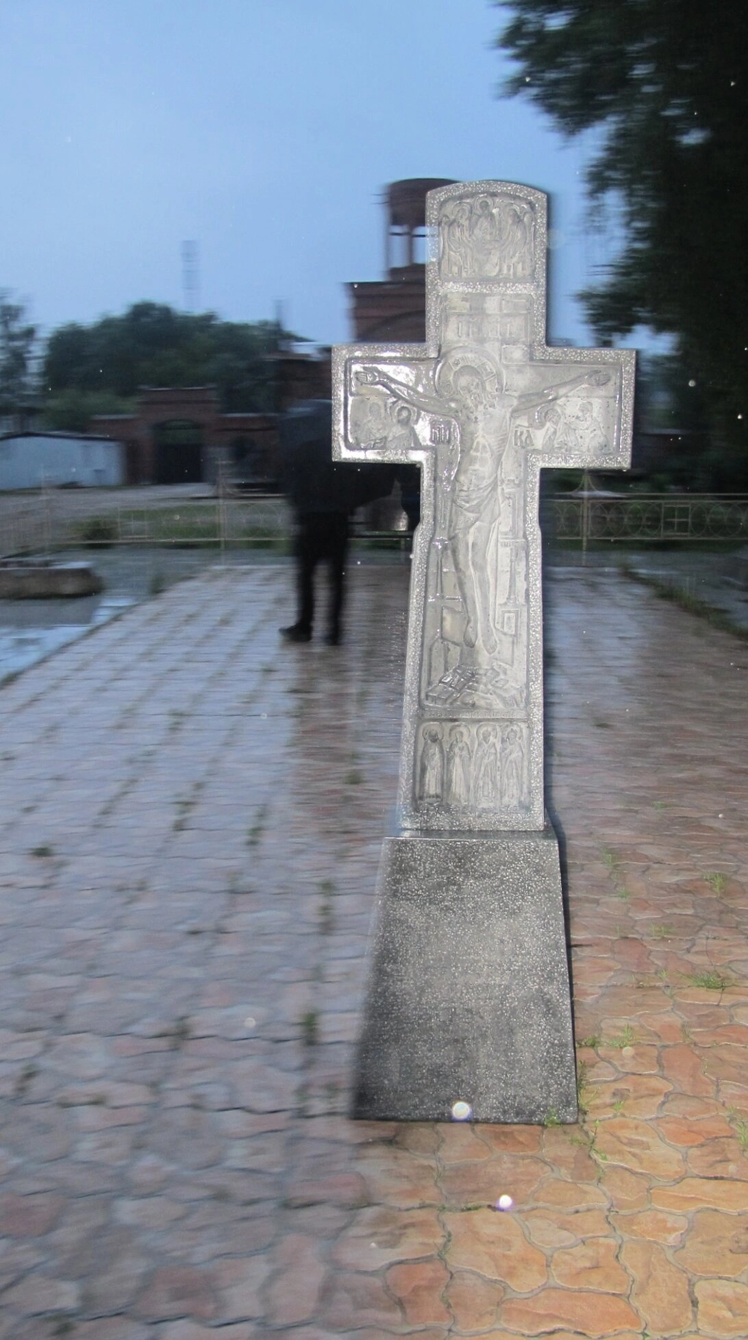 Крест установлен на специальном каменном постаменте на мощёной площадке, что характерно для сакрального пространства православных монастырей и храмов. Подобные кресты на Руси традиционно выполняли роль поклонных, напоминая верующим о крестной жертве Спасителя и предоставляя возможность для молитвы и духовного сосредоточения . Исторически поклонные кресты устанавливались на особых местах — у дорог, на въездах в города, на границах земель или в память о значимых событиях .