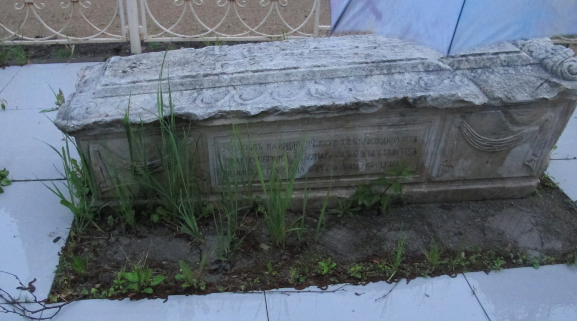 Каменный саркофаг в Свято-Лаврентьевом монастыре