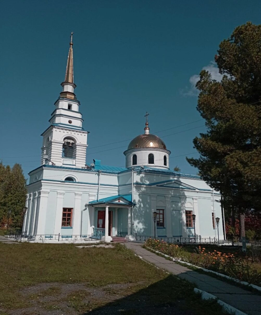 На фотографии запечатлена Казанская церковь, расположенная в городе Карпинске Свердловской области. Этот православный храм, освящённый в честь Казанской иконы Божией Матери, является значимым духовным центром и историческим памятником Урала.