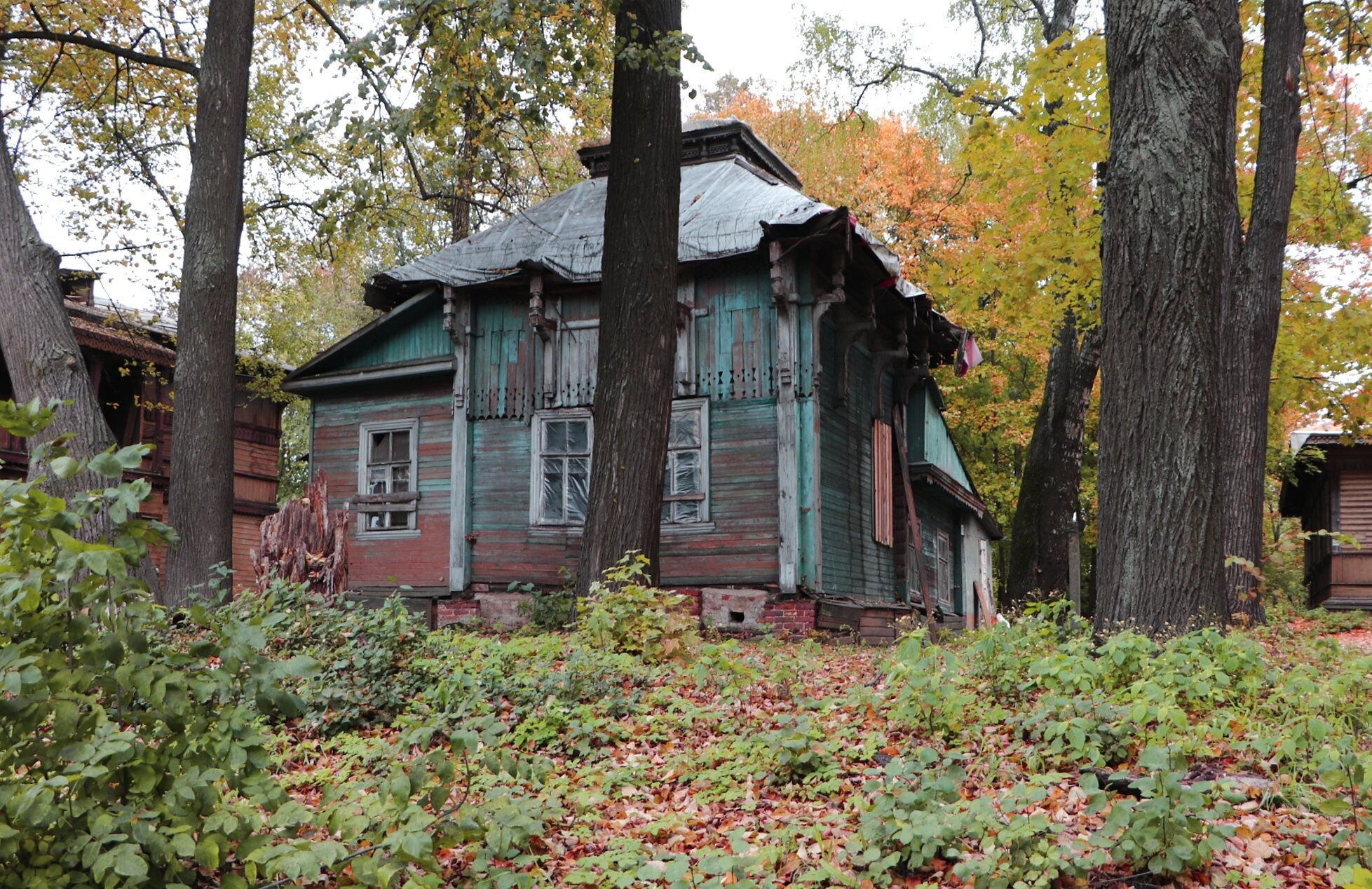 К сожалению, на момент создания фотографии храм пребывает в заброшенном состоянии. Наблюдаются следы длительного отсутствия ремонта: облупившаяся краска, повреждённая кровля, частично заколоченные оконные проёмы. Окружающая храм природа - старые деревья и густая растительность - создаёт атмосферу своеобразной благоговейной тишины, подчёркивая историческую ценность этого священного места.