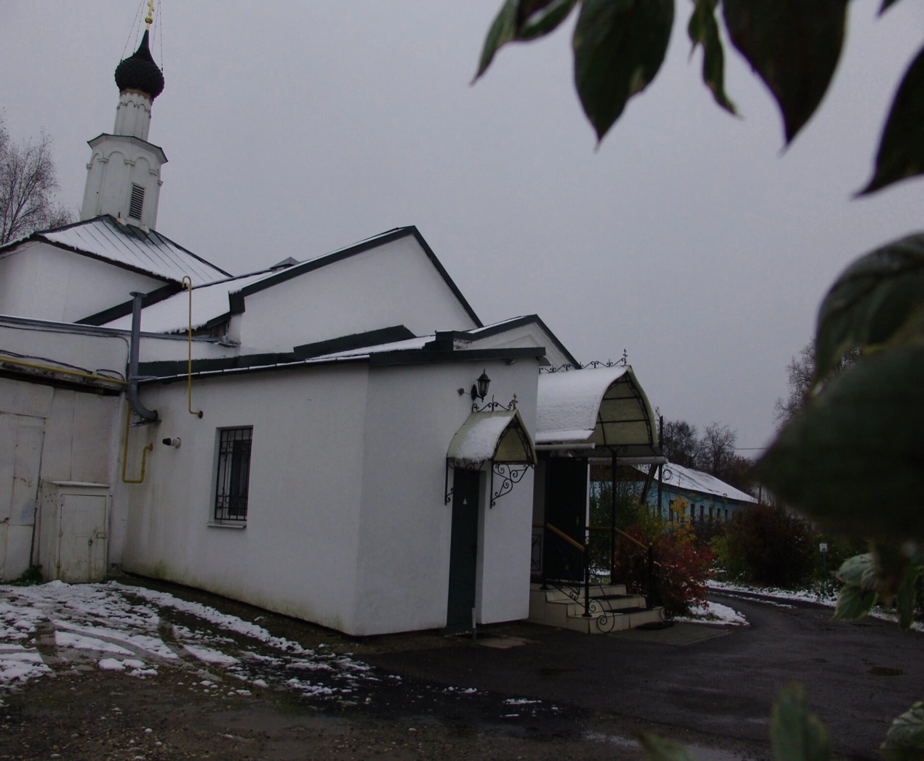 На снимке отчетливо видно, что церковное строение находится в прекрасном состоянии, что свидетельствует о заботливом отношении прихожан и духовенства к святыне. Одноэтажное здание с покатой крышей дополнено боковыми пристройками с крытыми входами, создающими гармоничный архитектурный ансамбль.