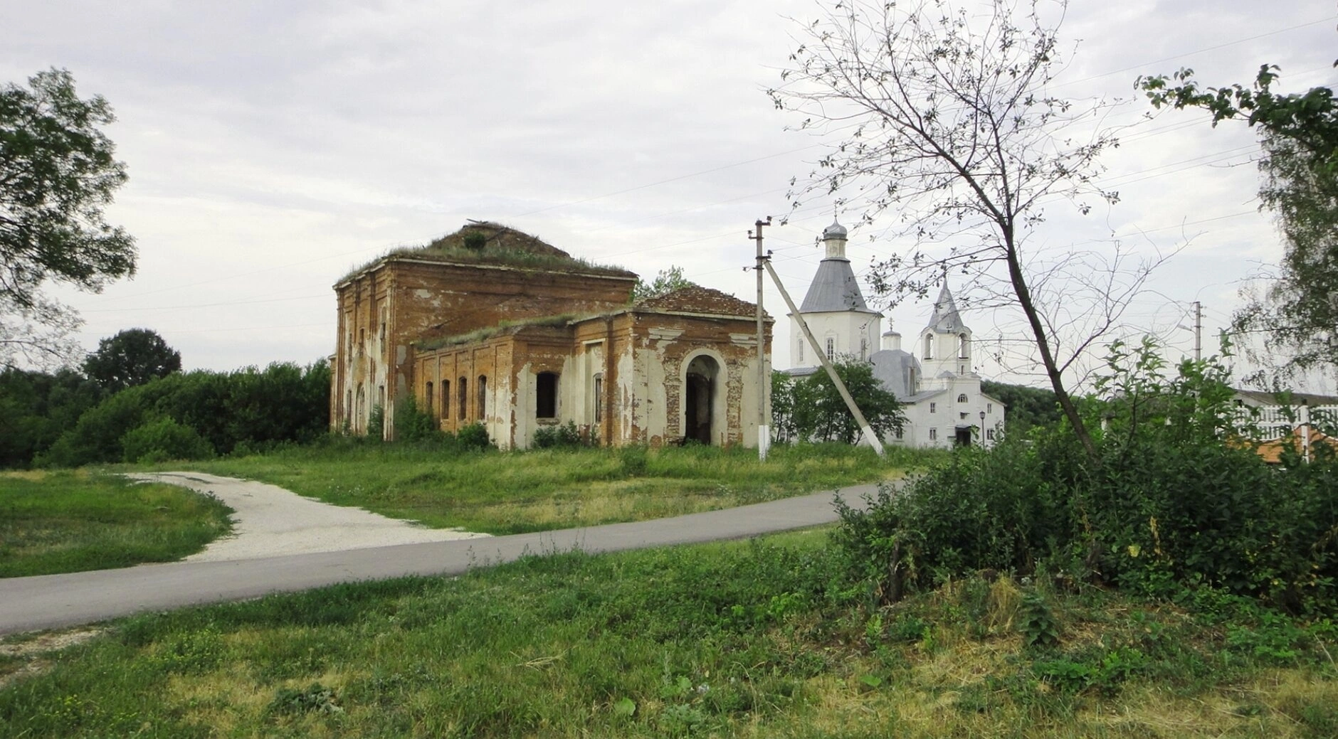 Территория вокруг храма поросла травой и кустарником, что усиливает впечатление заброшенности. Однако даже в таком состоянии Казанская церковь сохраняет особую духовную атмосферу и архитектурную выразительность, напоминая о богатом историко-культурном наследии Липецкой земли. На заднем плане фотографии просматриваются другие строения, возможно, относящиеся к храмовому комплексу или более поздним периодам застройки села.