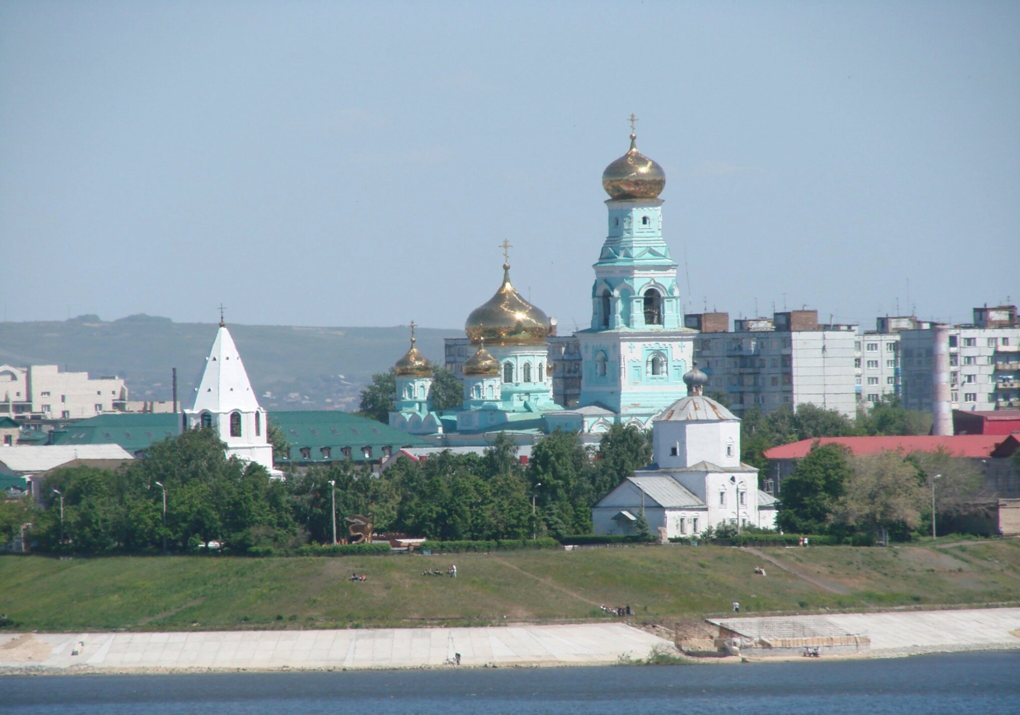 На фотографии запечатлён Казанский кафедральный собор — величественный православный храм, являющийся кафедральным собором Сызранской епархии Русской Православной Церкви. Это архитектурная доминанта и духовный центр города Сызрани, расположенный по адресу: переулок Достоевского, 17.