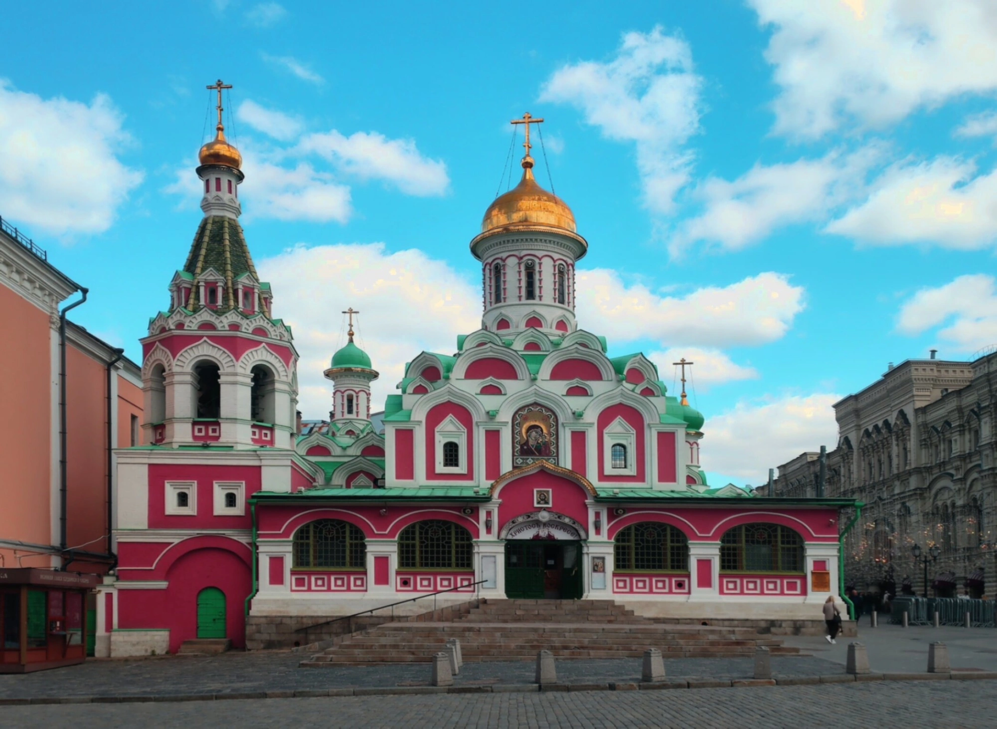 На фотографии представлен Казанский собор, расположенный в историческом центре Москвы на Красной площади. Этот православный храм, посвящённый Казанской иконе Божией Матери, является одним из знаковых памятников русского церковного зодчества и обладает глубоким духовным и историческим значением.