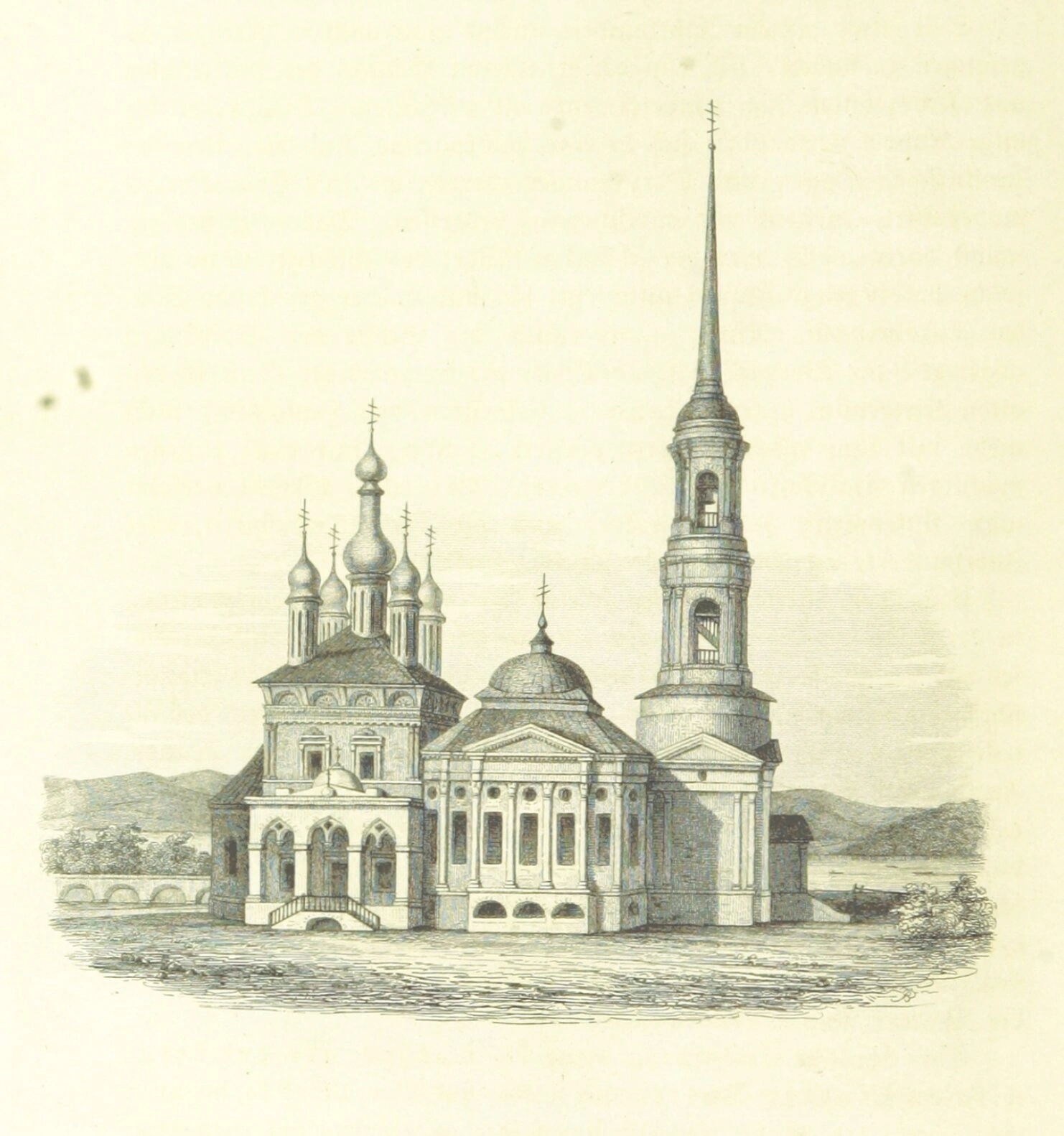 - Казанский собор в Калуге на старинной гравюре XIX века