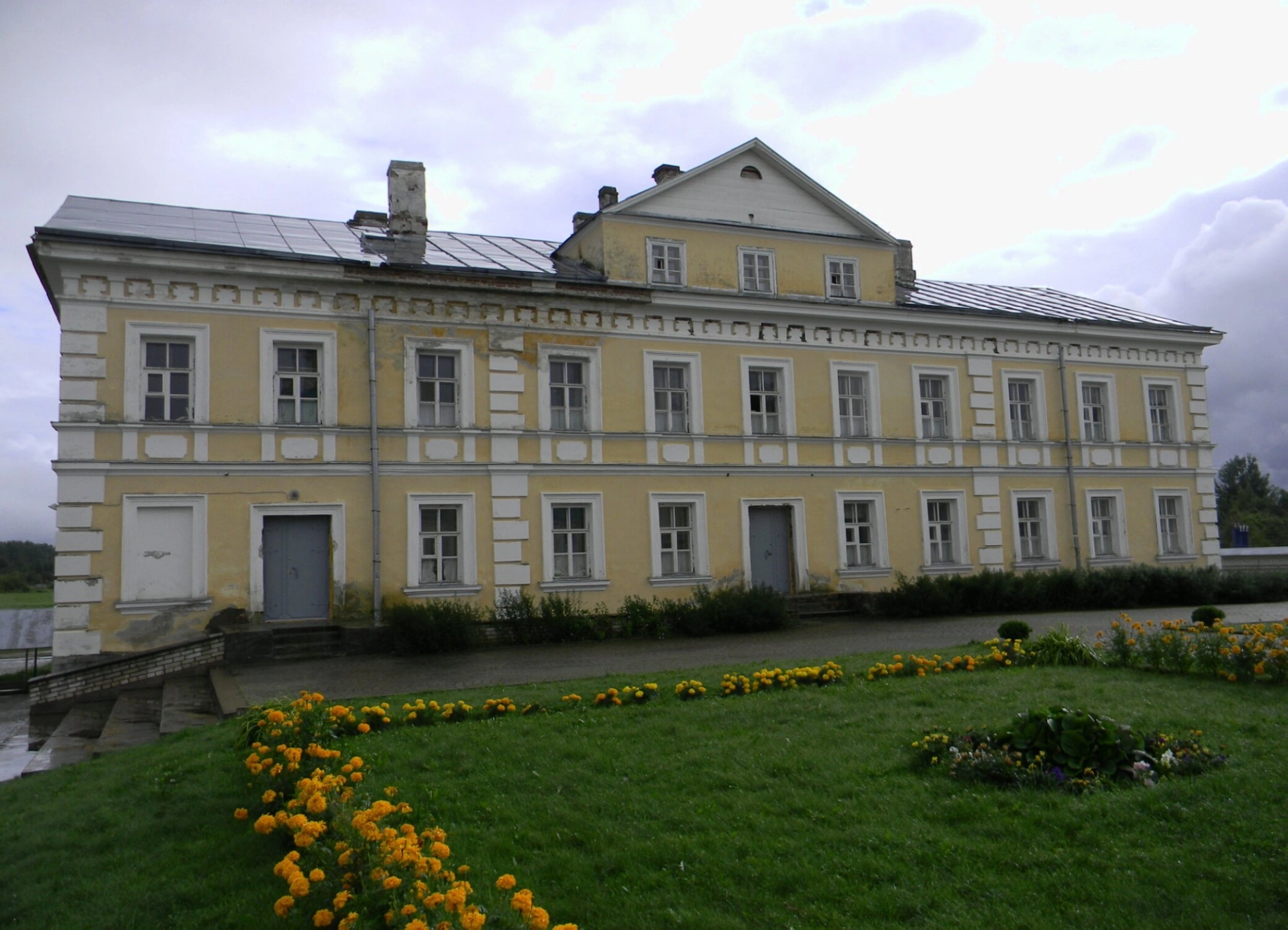 На представленной фотографии запечатлён один из келейных корпусов Введено-Оятского женского монастыря, древней православной обители, расположенной в Лодейнопольском районе Ленинградской области. Монастырь, основанный в первой половине XV века, посвящён Введению во храм Пресвятой Богородицы и назван по реке Оять, на берегу которой он был воздвигнут.