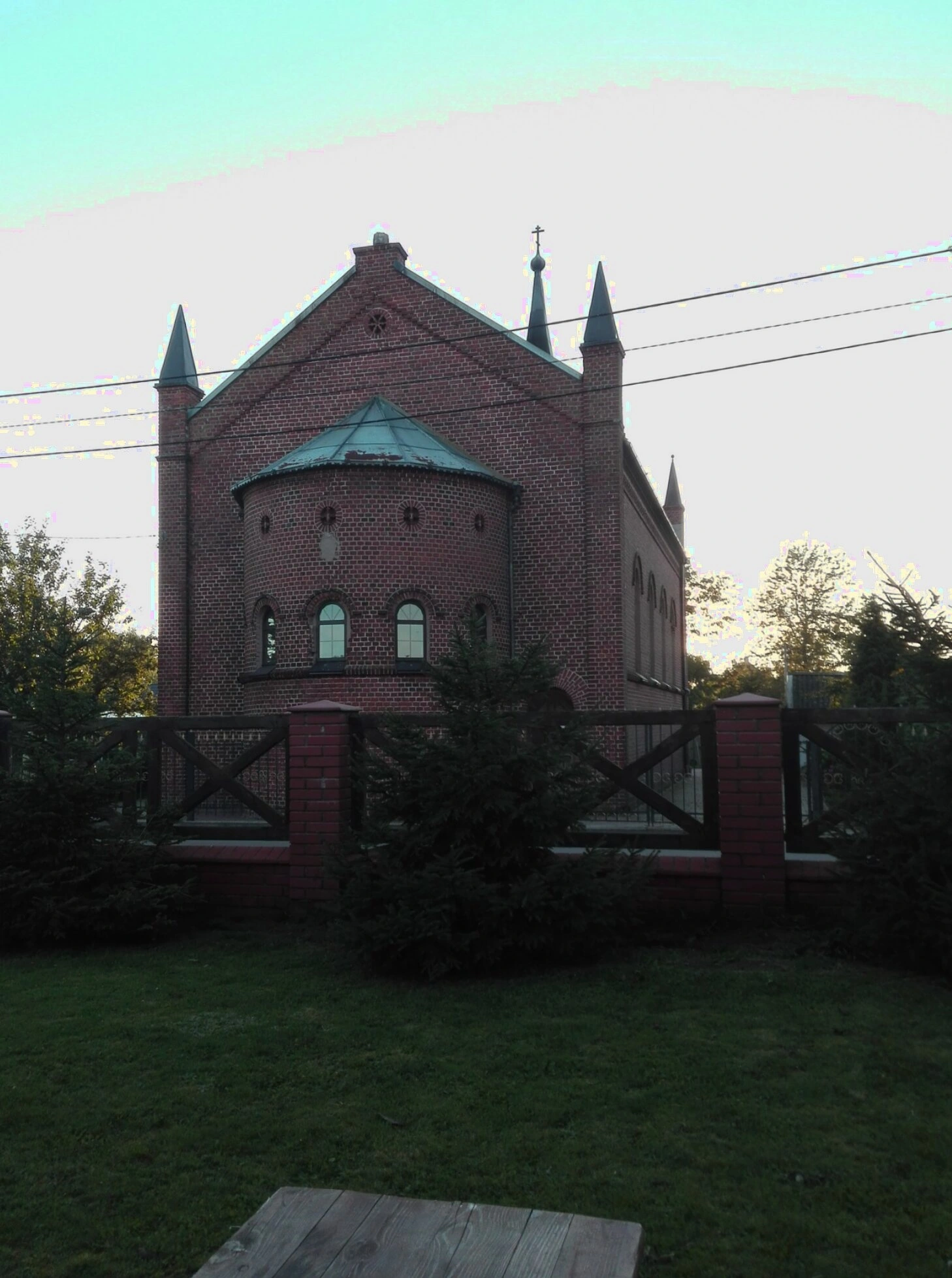 Здание церкви было построено в 1873 году из красного клинкерного кирпича. Архитектурный облик храма характеризуется строгостью форм и устремлённостью ввысь, что свойственно готической традиции. Фасад здания украшают стрельчатые оконные проёмы, остроконечные башенки и стройная колокольня, увенчанная шпилем. С восточной стороны расположена апсида с конической кровлей.