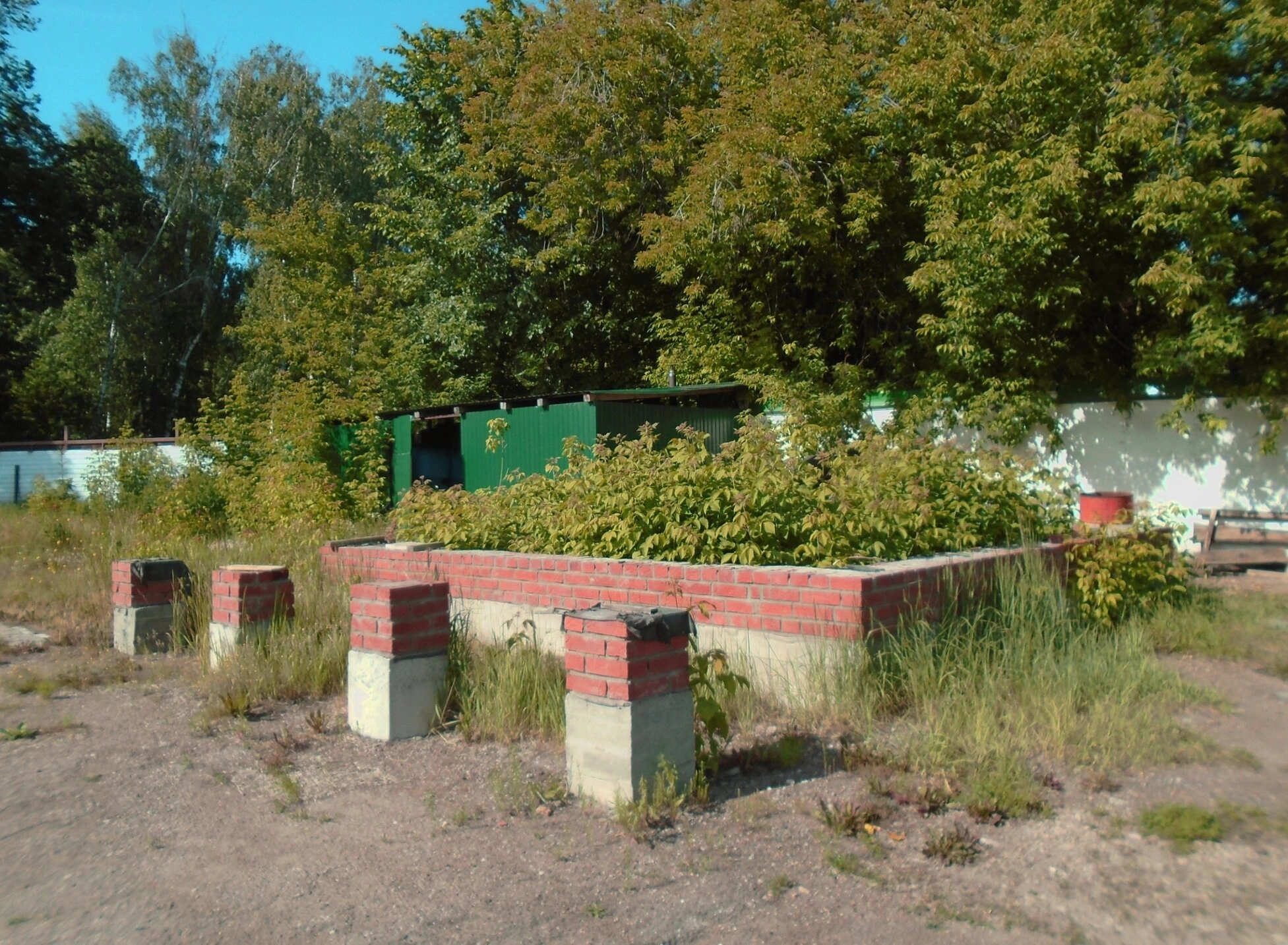 На снимке видна открытая местность с элементами исторического фундамента и кирпичной кладки, что свидетельствует о многовековой истории этого святого места. Заросшая кустарником территория напоминает о периодах запустения, постигших обитель после революционных событий 1917 года, когда монастырь был закрыт, а его храмы и колокольня варварски разрушены в 1930-е годы.
