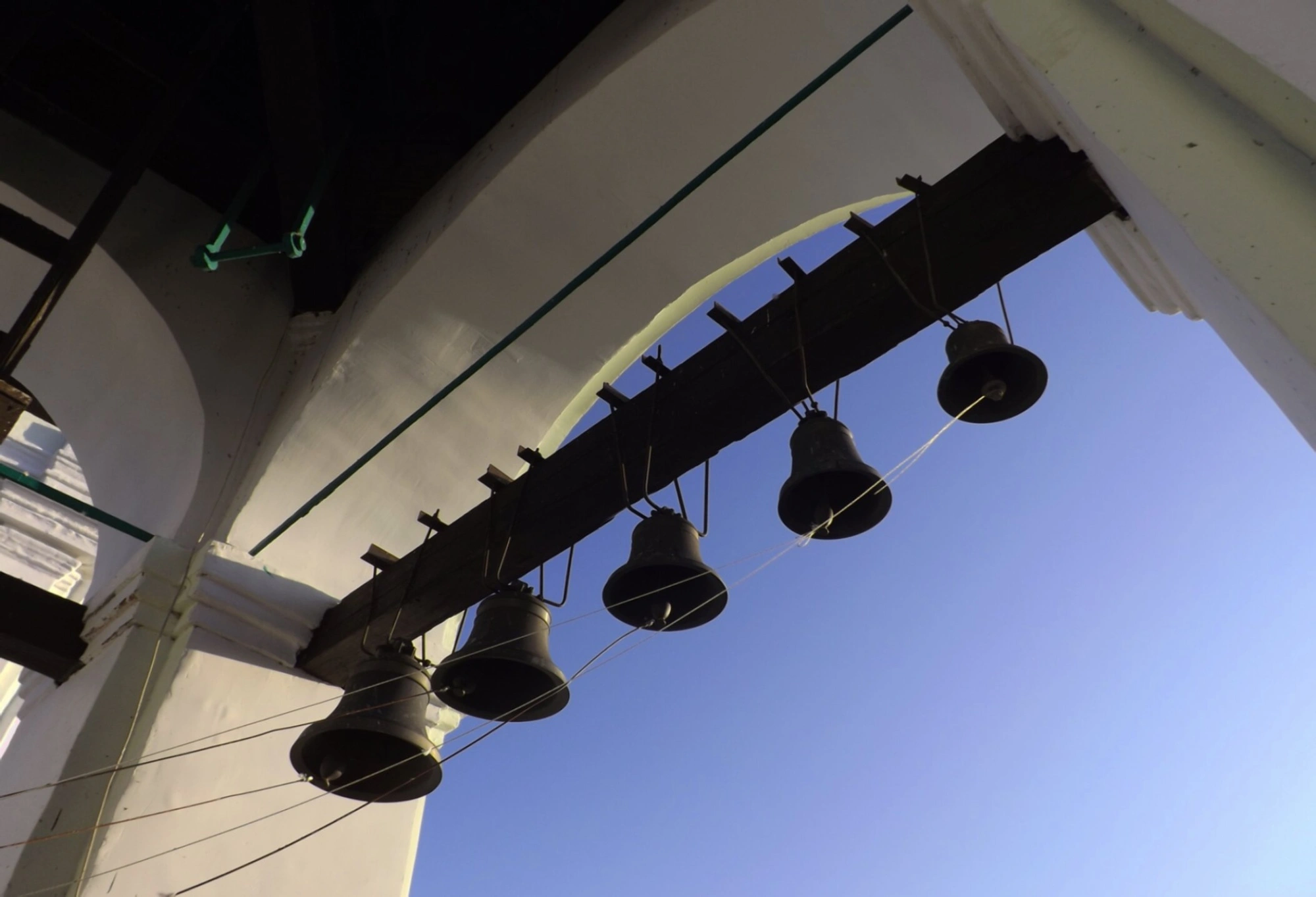 Под сенью каменной арки, увенчанной православным крестом, подвешены колокола разного размера, предназначенные для созыва верующих на богослужение и возвещения важнейших моментов церковной службы. К языкам больших колоколов привязаны веревки (возжи), спускающиеся вниз для управления звонарем. Меньшие зазвонные колокола используются для исполнения более сложных мелодий и ритмов.