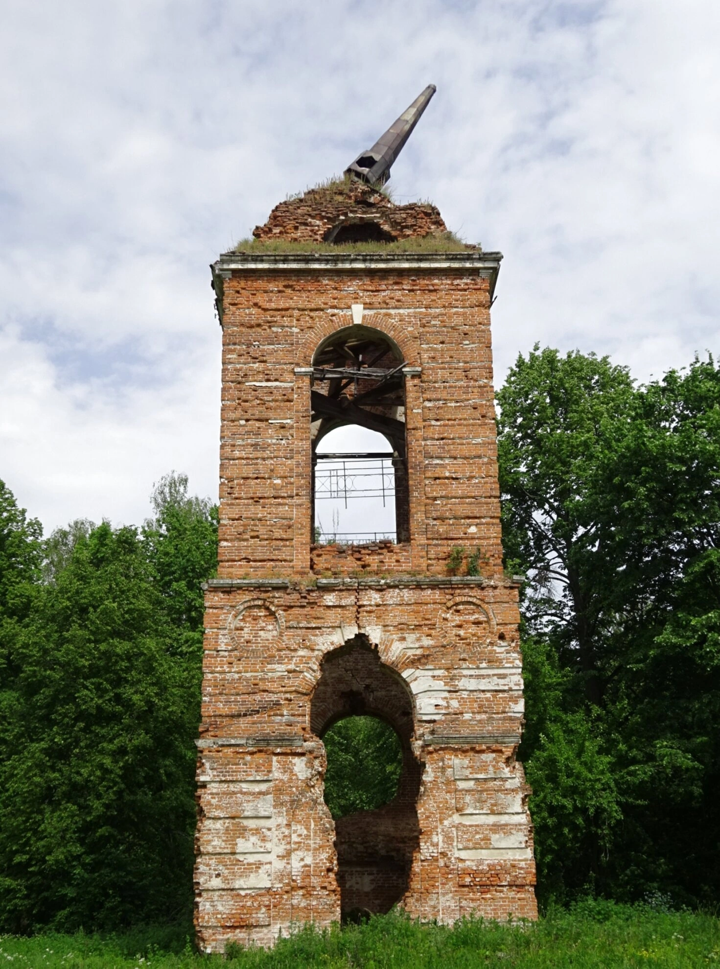 Исторические сведения указывают на то, что храм был построен в конце XIX века и освящён в честь чудотворной иконы Божией Матери «Всех скорбящих Радость». В годы гонений на Церковь храм постигла участь многих русских святынь — он был закрыт и постепенно пришёл в запустение. Несмотря на разруху, колокольня продолжает возвышаться над окружающим landscape, напоминая о былом величии православной веры в этих местах.