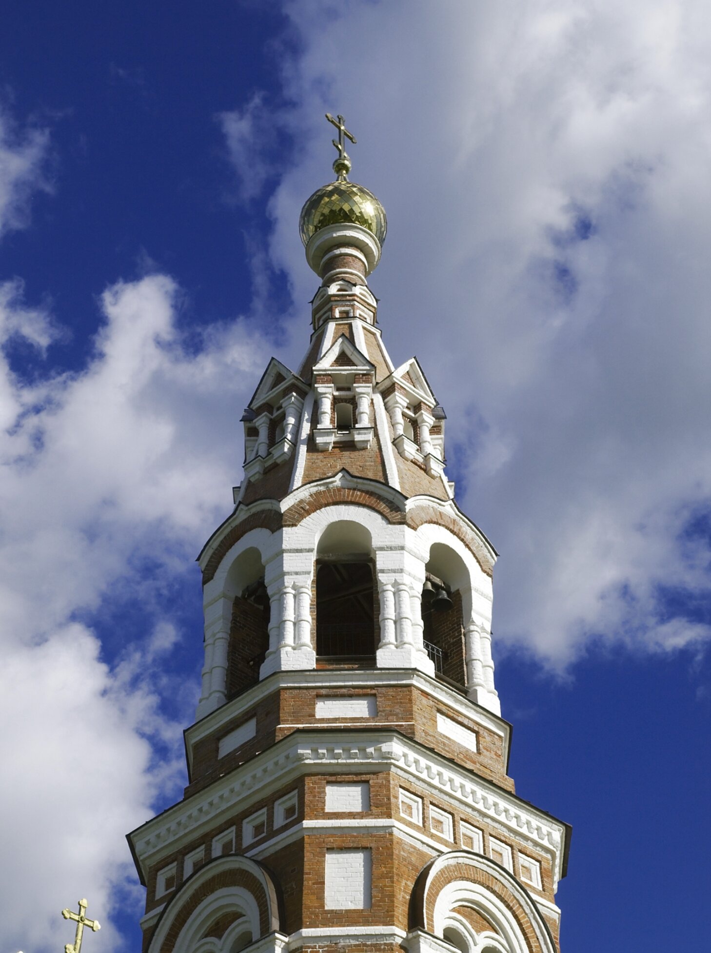 Колокольня представляет собой архитектурный шедевр, увенчанный золочёной главкой с водружённым на неё православным крестом. Арочные проёмы ярусов звона предназначены для размещения церковных колоколов, чей благовест разносится над окрестностями села. Каменный храм с этой колокольней был возведён в 1910 году на месте прежнего деревянного храма, продолжая многовековую традицию православного богослужения в этой местности.