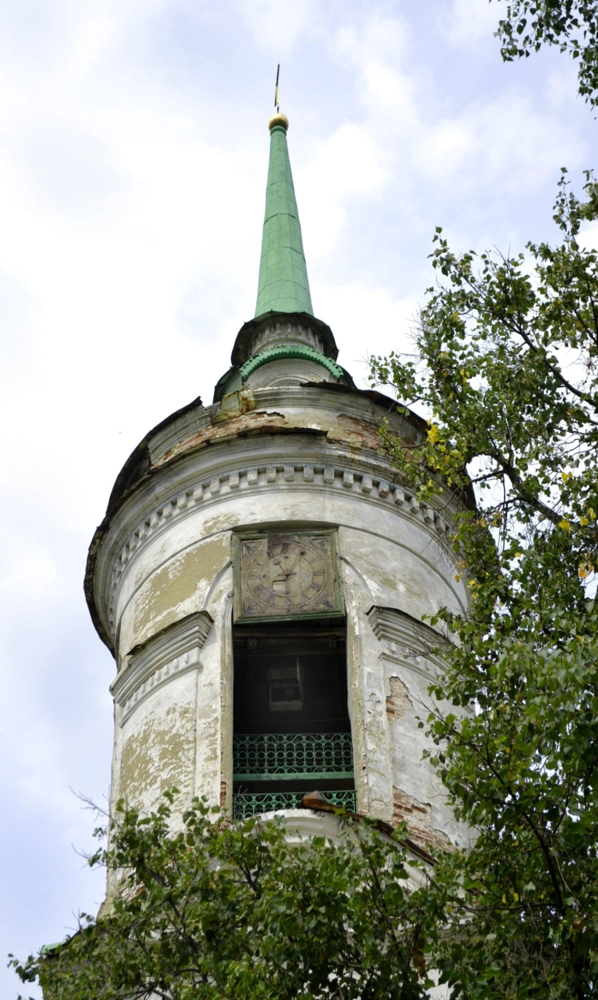 Величественное сооружение венчает остроконечный зелёный шпиль, увенчанный православным крестом, сияющим под лучами солнца. Ярусы колокольни богато украшены кирпичным узорочьем, характерным для храмовой архитектуры второй половины XIX века. Чёткие грани и симметричные формы свидетельствуют о мастерстве уральских зодчих.