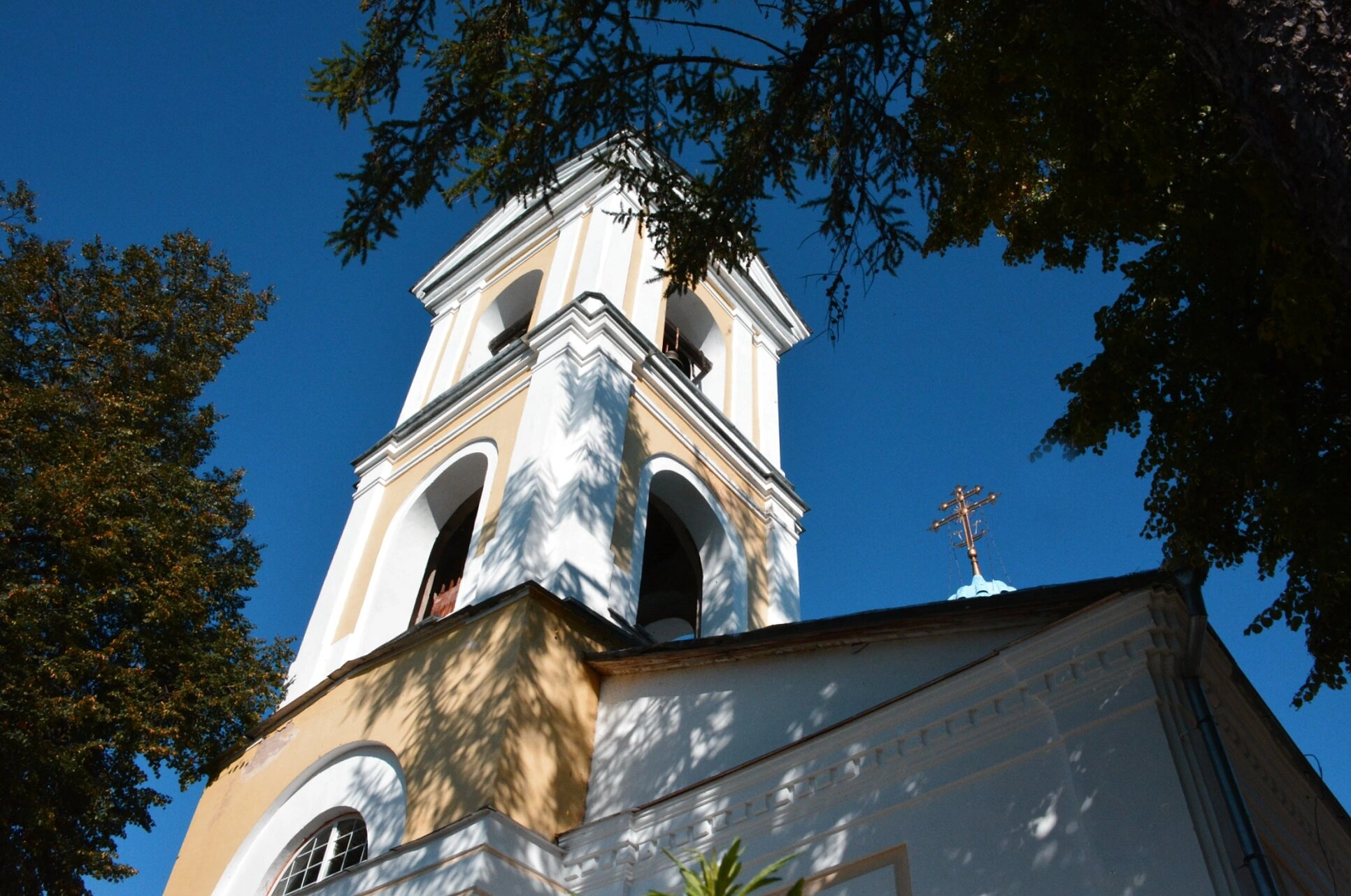 Колокольня, увенчанная золочёным крестом, устремляется в небесную высь. Её ярусная композиция и арочные проёмы звона характерны для классического стиля, в котором выстроен весь храмовый комплекс. Купол, венчающий колокольню, имеет изящную форму и гармонично завершает всю композицию, придавая ей стройность и лёгкость.