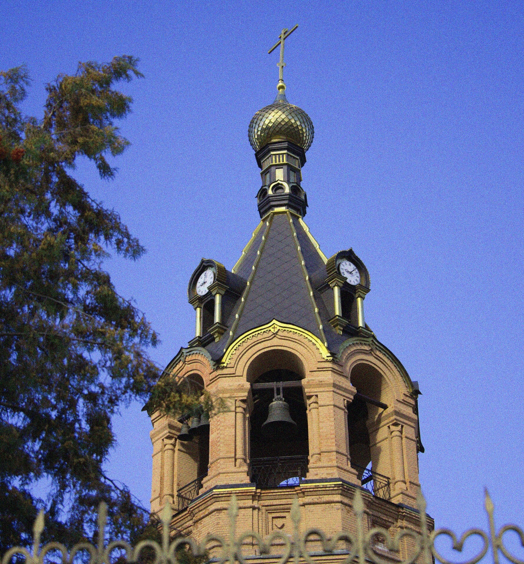 Колокольня выполнена в традициях русской церковной архитектуры. Её ярусы, постепенно уменьшающиеся кверху, создают устремлённый ввысь силуэт, символизирующий молитвенное горение души к Богу. На одном из ярусов установлены часовые циферблаты, по которым вот уже более века верующие и жители города сверяют время, а сам бой часов разносится далеко по округе, созывая прихожан на богослужение.